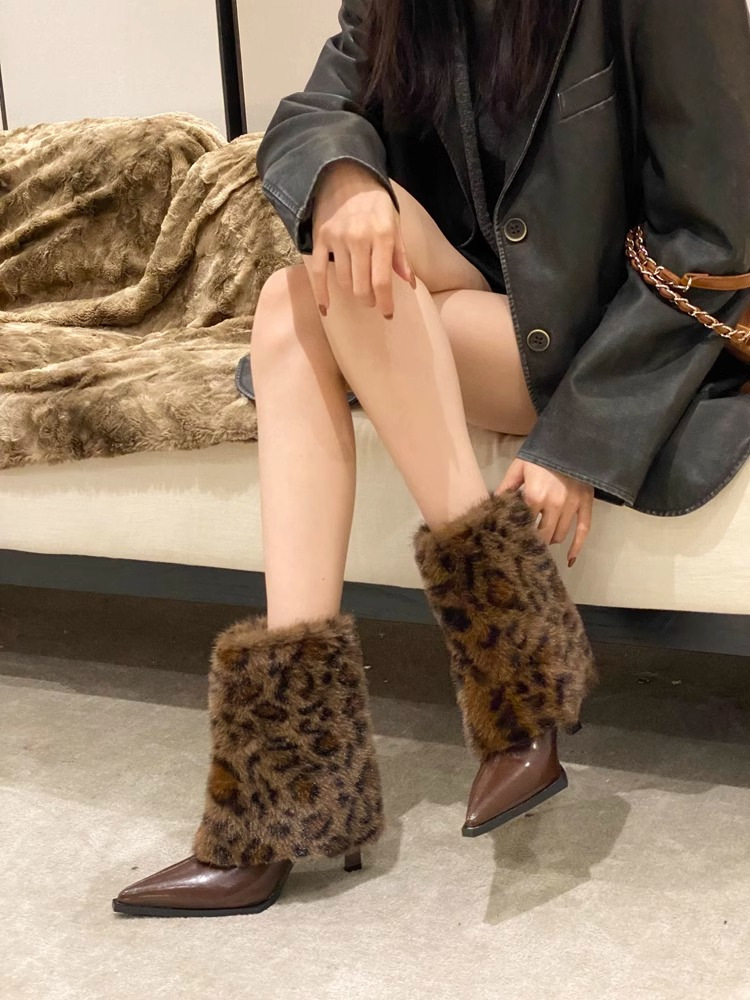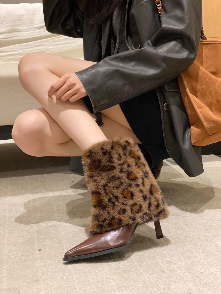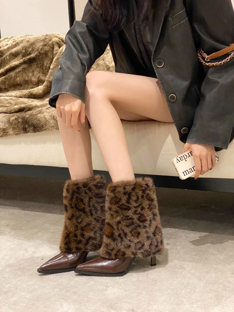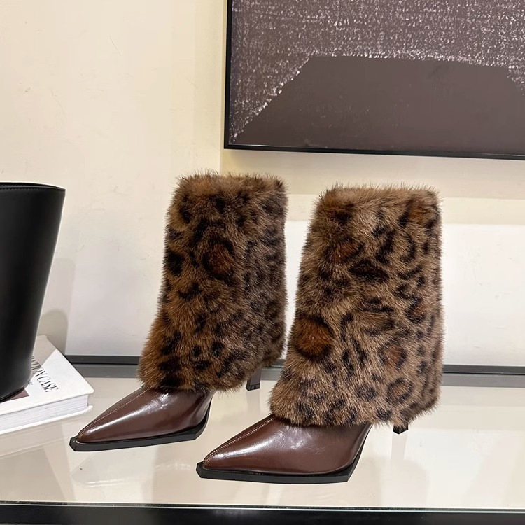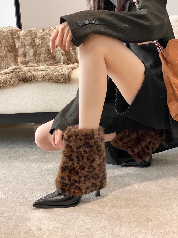 2024 가을과 겨울 새로운 기모 따뜻한 짧은 부츠 여성 부츠 뾰족한 패션 부츠 마오 마오 면화 부츠