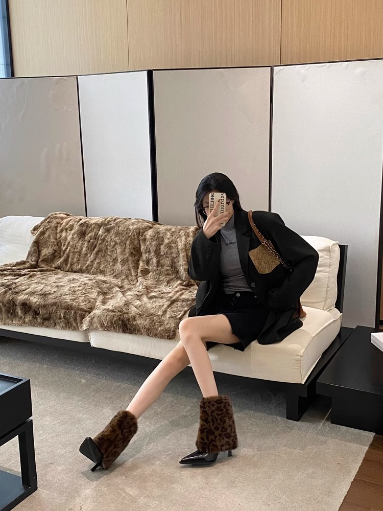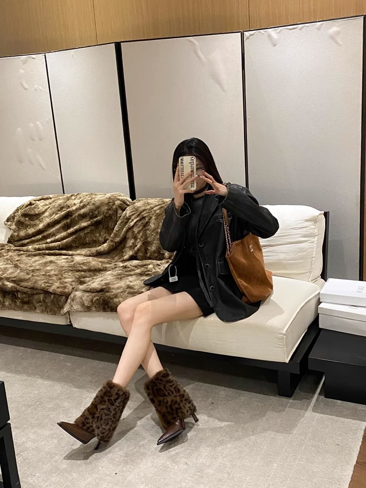2024 가을과 겨울 새로운 기모 따뜻한 짧은 부츠 여성 부츠 뾰족한 패션 부츠 마오 마오 면화 부츠스토어 가기