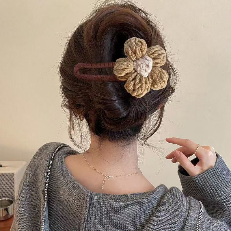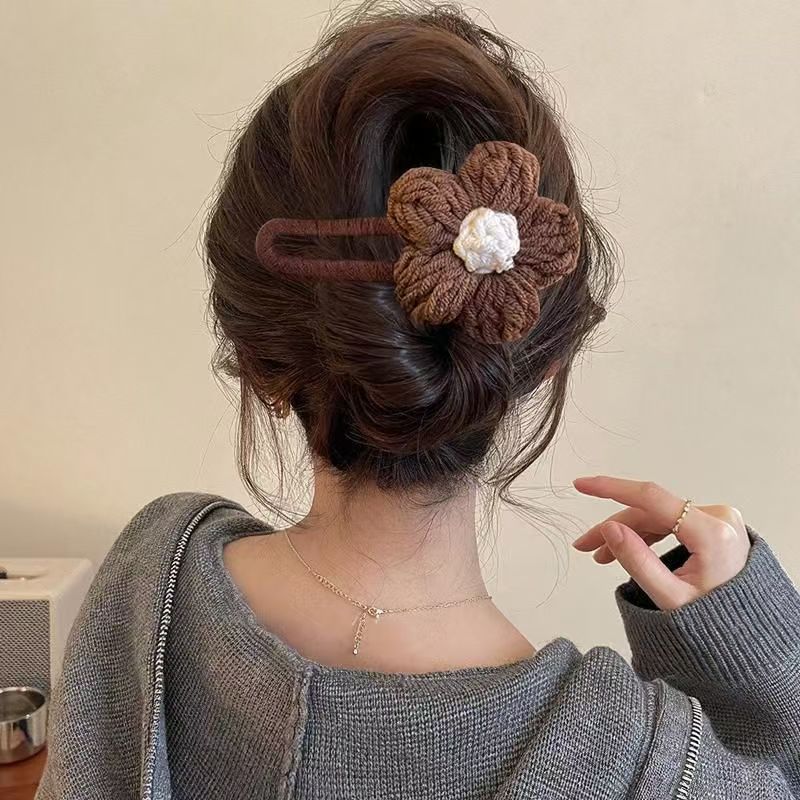 2024년 신상 가을 겨울 플러시 꽃 머리핀 헤어 액세서리 덕빌 클립 여성용 스위트 스타일스토어 가기