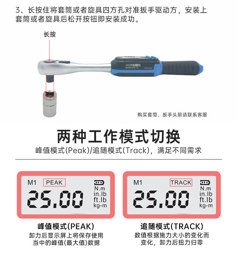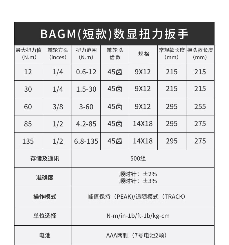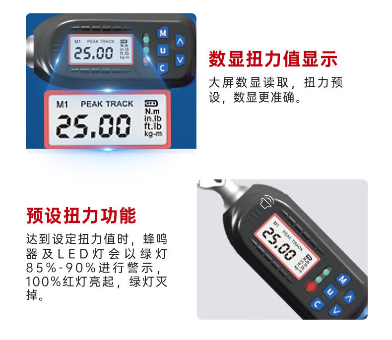 Peric BAGM 디지털 토크 렌치 고정밀 전자 프리셋 조정 가능한 래칫 토크 렌치