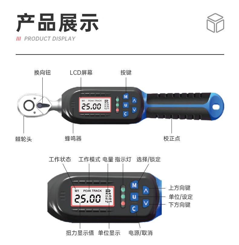 Peric BAGM 디지털 토크 렌치 고정밀 전자 프리셋 조정 가능한 래칫 토크 렌치스토어 가기