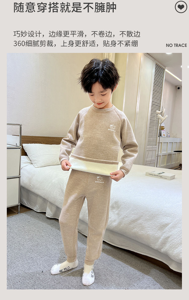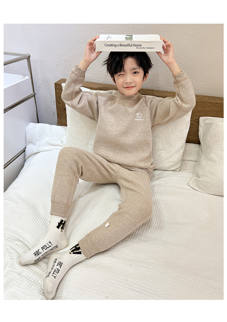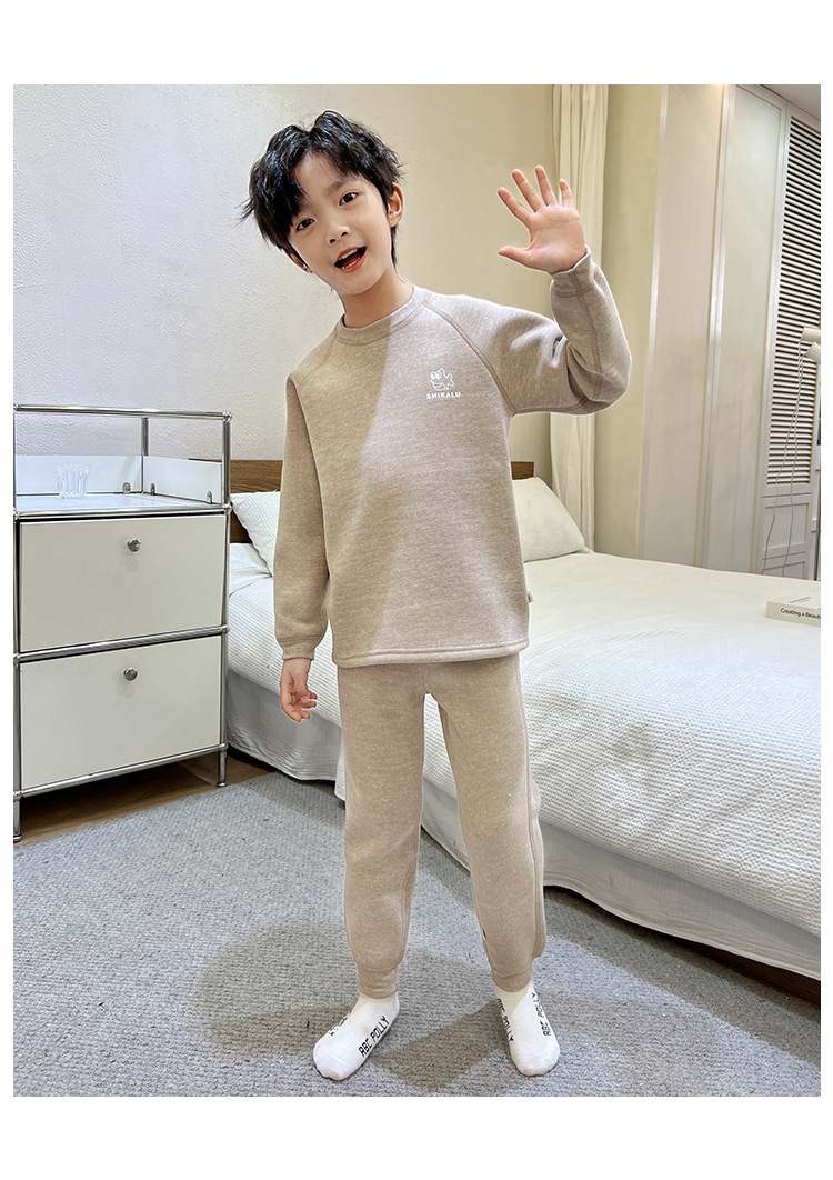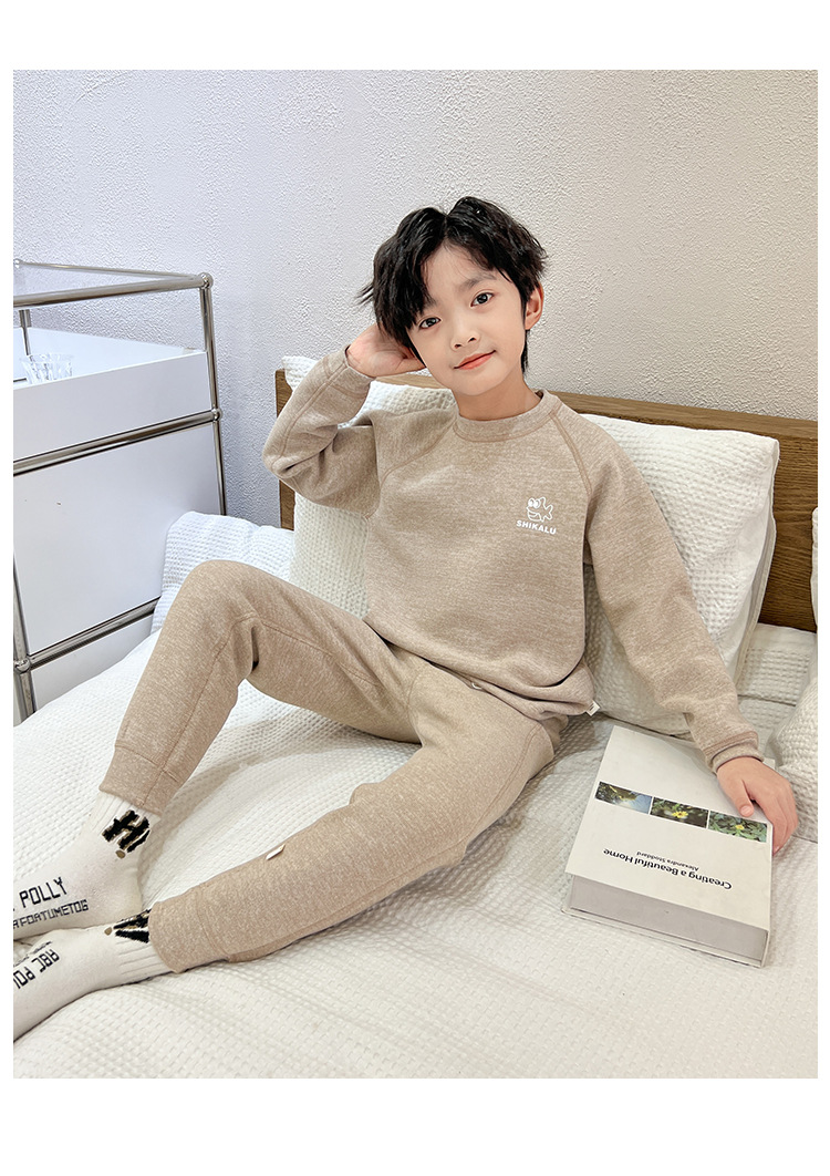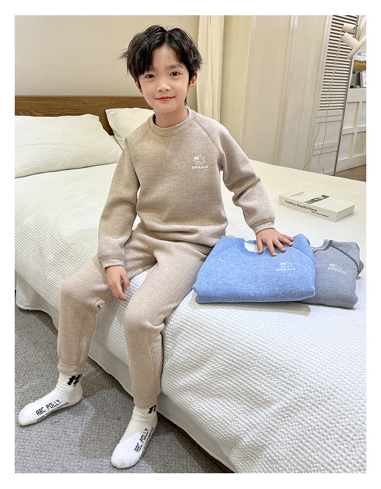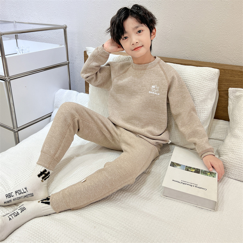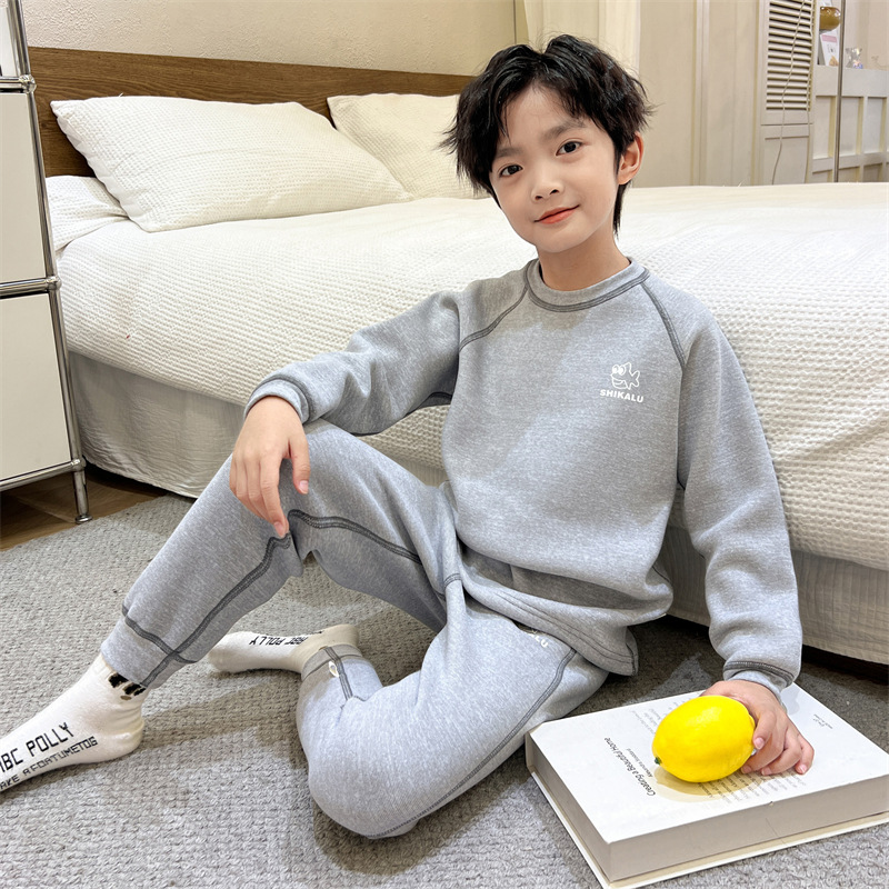 남아용 가을옷과 내복 세트 2025년 신상품, 데르롱 소재의 봄, 가을, 겨울용 보온 속옷, 중대형 어린이용 순면 남아 속옷