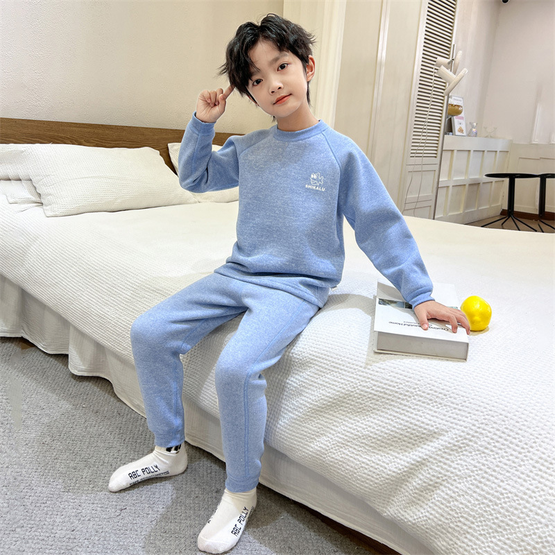 남아용 가을옷과 내복 세트 2025년 신상품, 데르롱 소재의 봄, 가을, 겨울용 보온 속옷, 중대형 어린이용 순면 남아 속옷스토어 가기