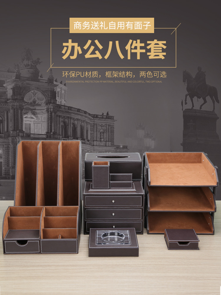 비즈니스 가죽 데스크탑 다기능 펜 컨테이너 창조적 인 패션 한국 사무실 용품 세트 문구 보관 상자스토어 가기
