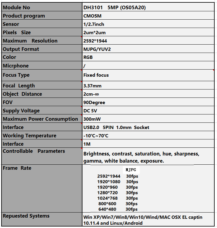 5 백만 OS05A20 HD USB 드라이브없는 카메라 모듈 낮은 조명 얼굴 인식 산업 비전 모듈스토어 가기