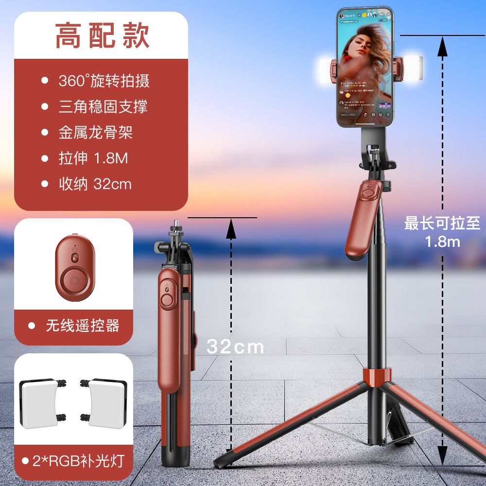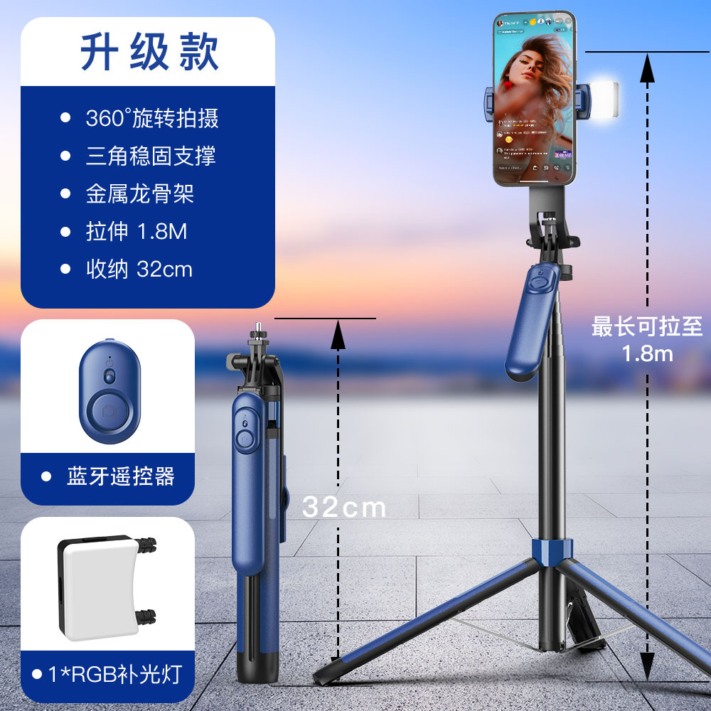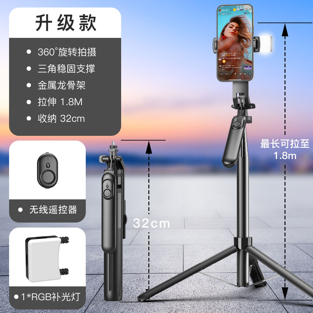 국경 간 Q03 셀카 스틱 RGB 채우기 빛 휴대용 안정기 1.8m 바닥 스탠드 휴대 전화 블루투스 셀카 스틱
