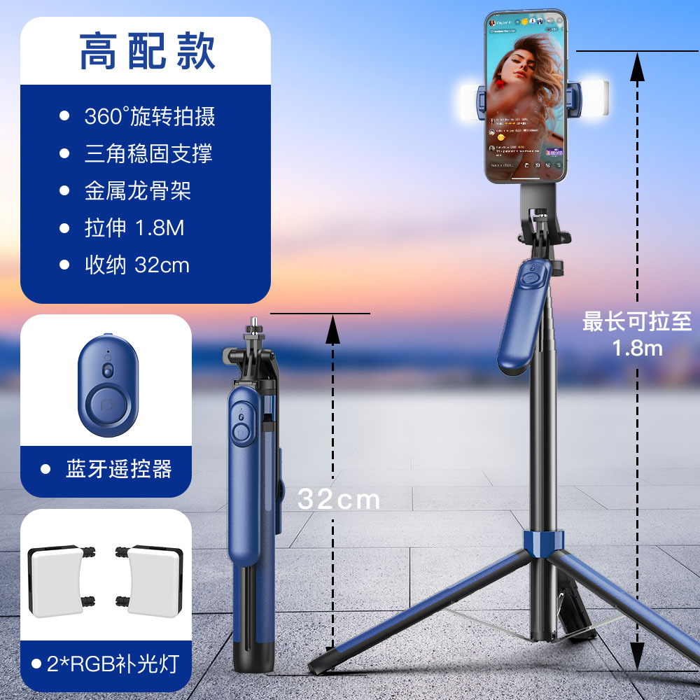 국경 간 Q03 셀카 스틱 RGB 채우기 빛 휴대용 안정기 1.8m 바닥 스탠드 휴대 전화 블루투스 셀카 스틱스토어 가기