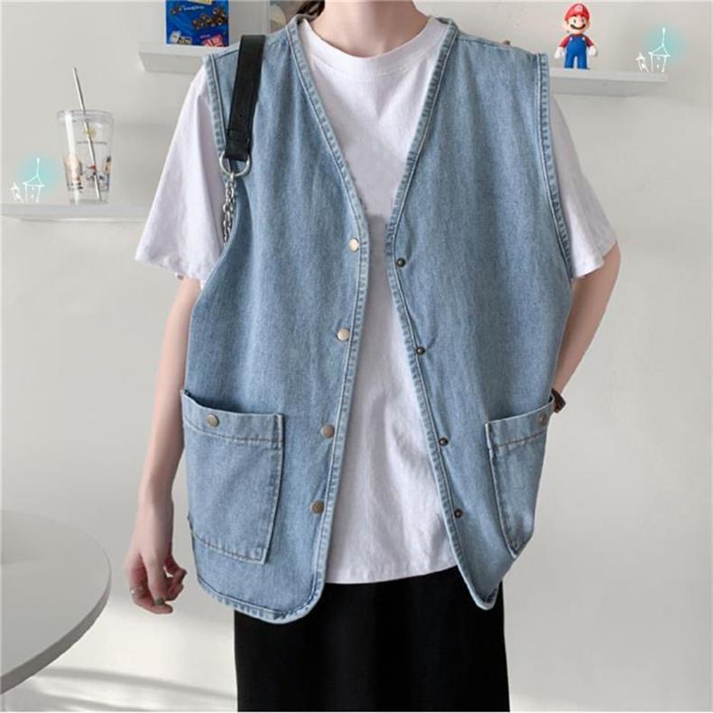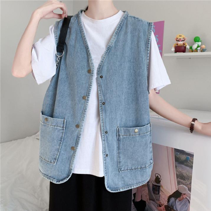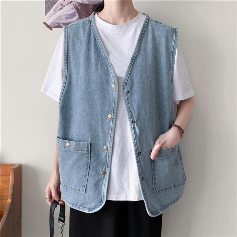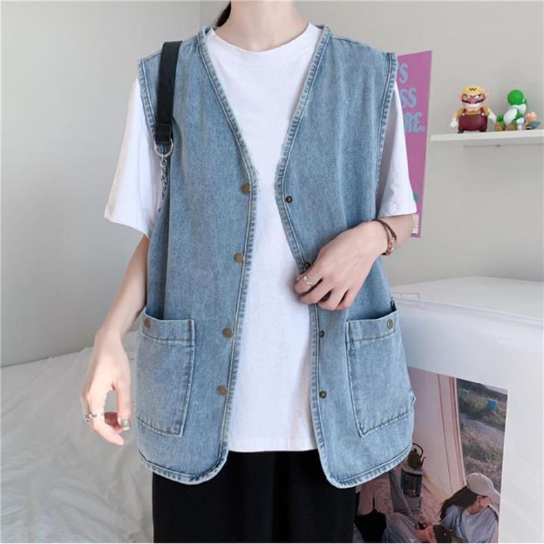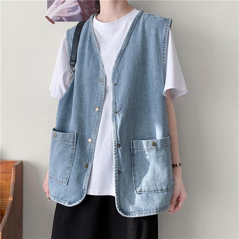 데님 조끼 여자 조끼 겉옷 느슨한 올 매치 재킷 레트로 홍콩 스타일 코트 칼리지 스타일 민소매 웨이스트 코트 세트스토어 가기