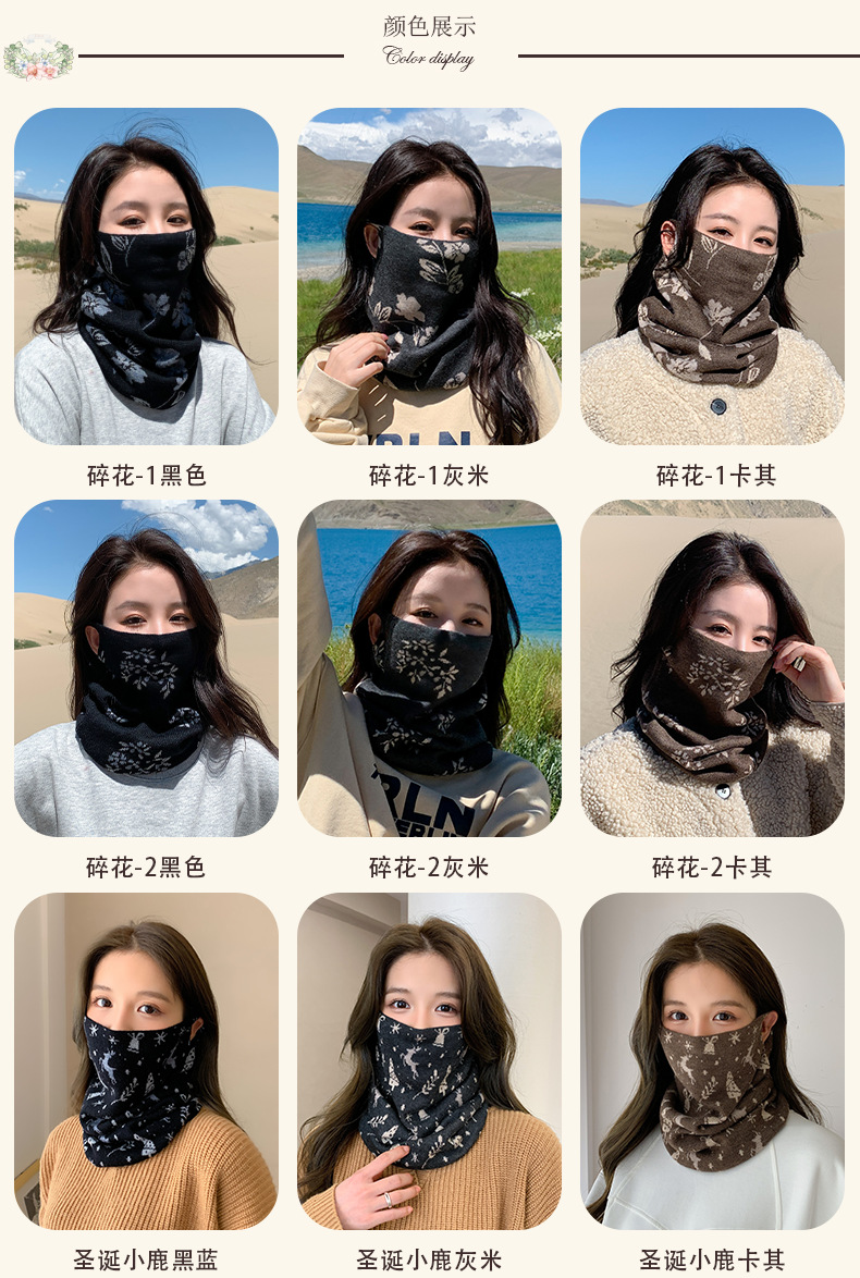 가을과 겨울용 여성 스카프 한국식 올매치 다기능 귀 교수형 마스크 목 슬리브 이중 사용 야외 사이클링 따뜻한 목 보호 목 소매