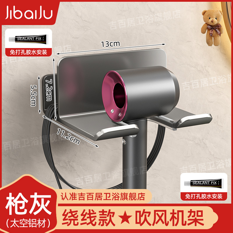 공장 공급 헤어 드라이어 랙 천공되지 않은 화장실 벽 장착 헤어 드라이어 브래킷 욕실 보관 랙스토어 가기