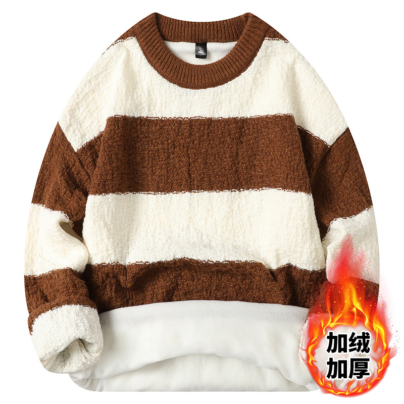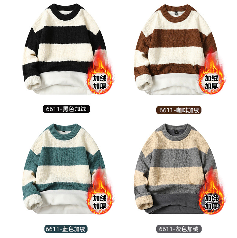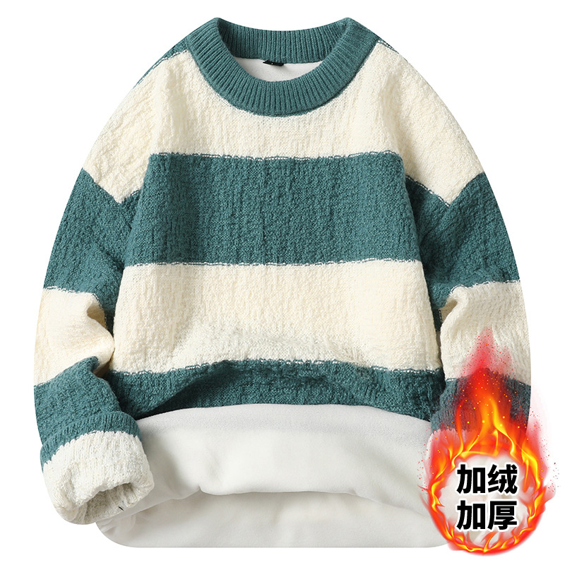 기모 두꺼운 크루 넥 스웨터 남자의 가을과 겨울 새로운 느슨한 따뜻한 니트 스웨터베이스 스웨터 솔리드 품질스토어 가기