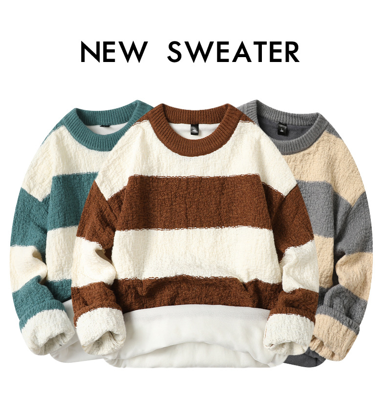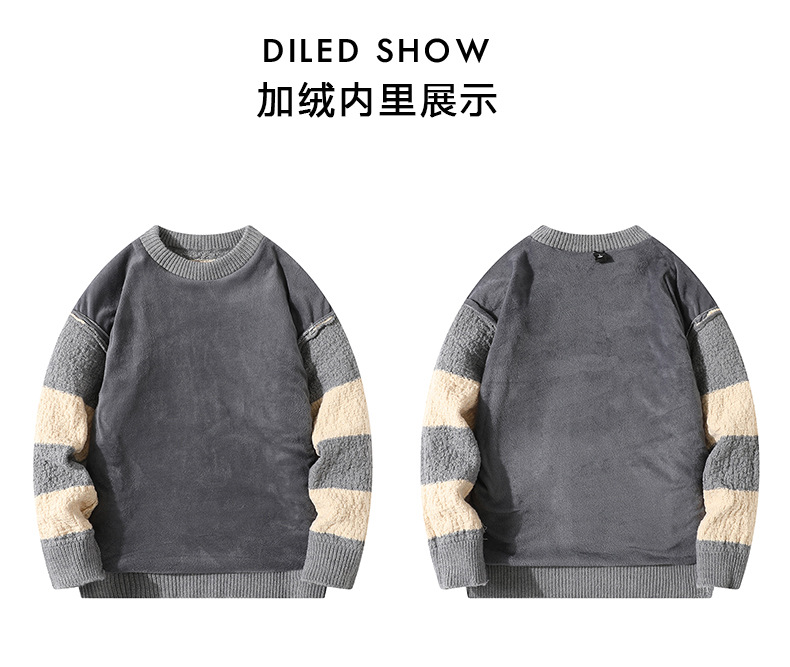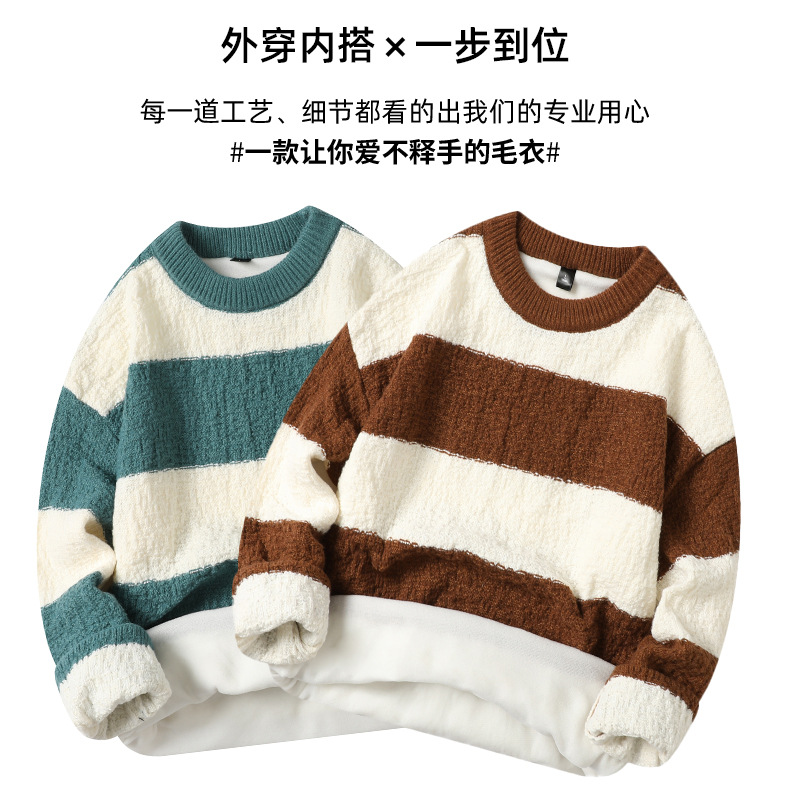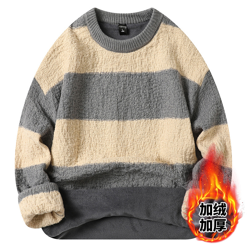 기모 두꺼운 크루 넥 스웨터 남자의 가을과 겨울 새로운 느슨한 따뜻한 니트 스웨터베이스 스웨터 솔리드 품질