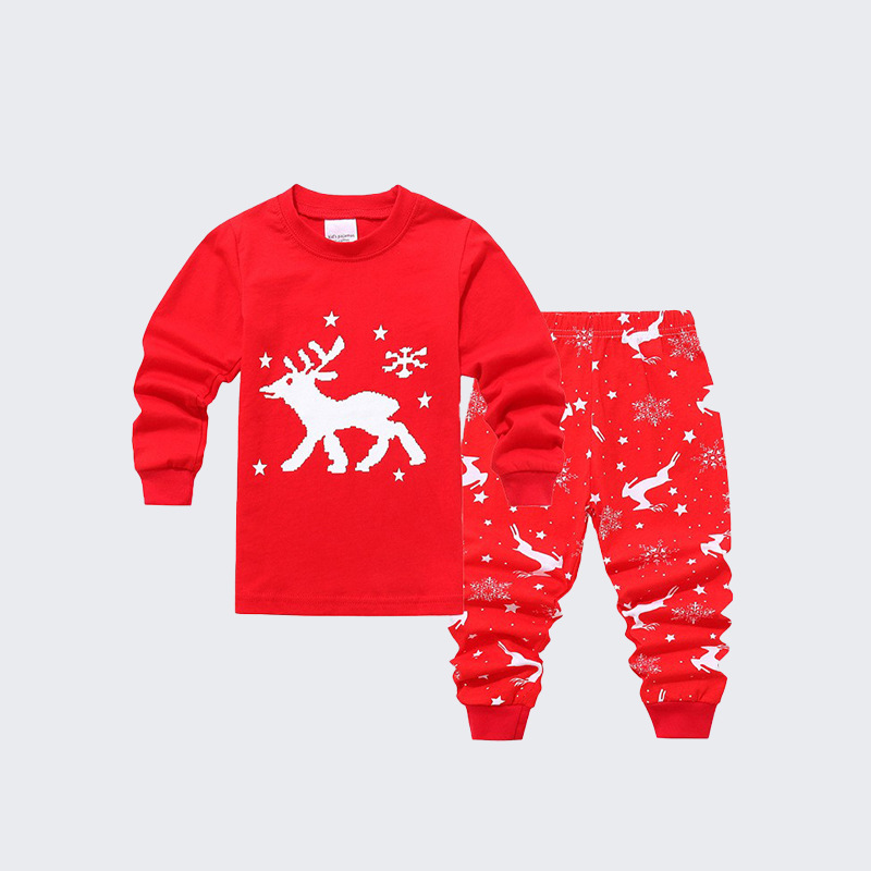 봄과 가을 크리스마스 의류 휴일 정장 만화 순록 패턴 중소 어린이 긴팔 정장 가정 의류 속옷