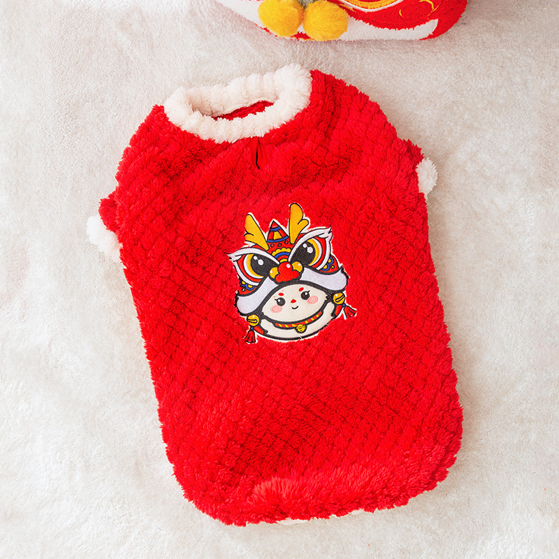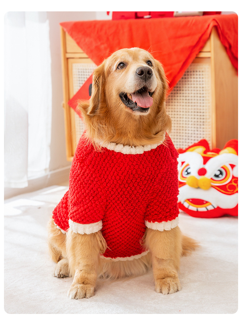 가을과 겨울 개 새해 옷 따뜻한 두 다리 사자 각성 벨벳 미디어와 큰 개 골든 리트리버 새해 복 많이 받으세요 축제 애완 동물 의류