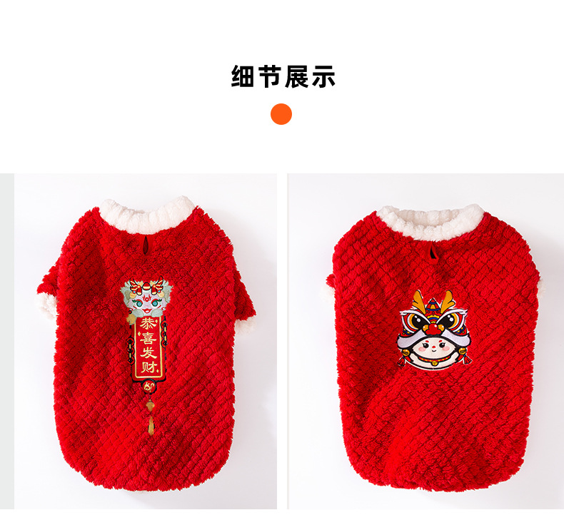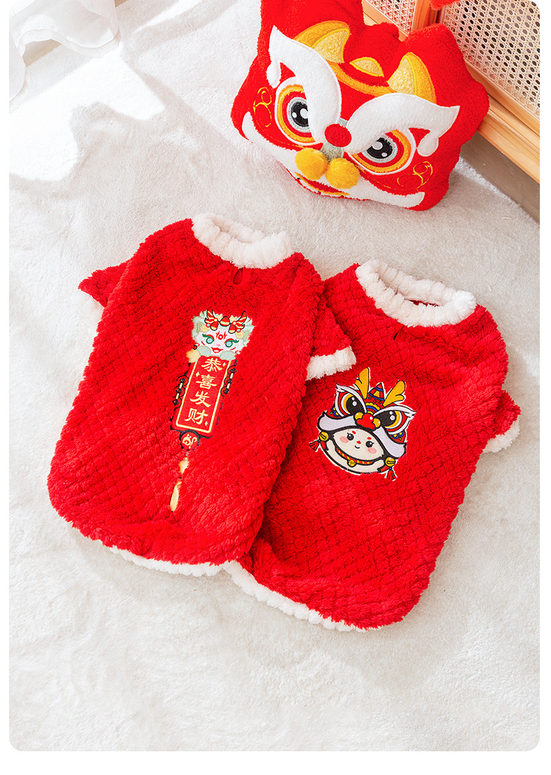 가을과 겨울 개 새해 옷 따뜻한 두 다리 사자 각성 벨벳 미디어와 큰 개 골든 리트리버 새해 복 많이 받으세요 축제 애완 동물 의류스토어 가기