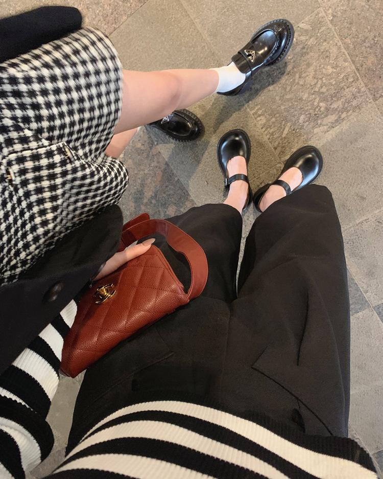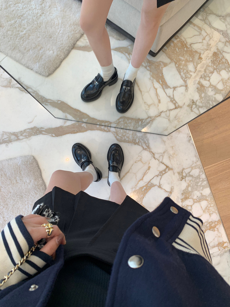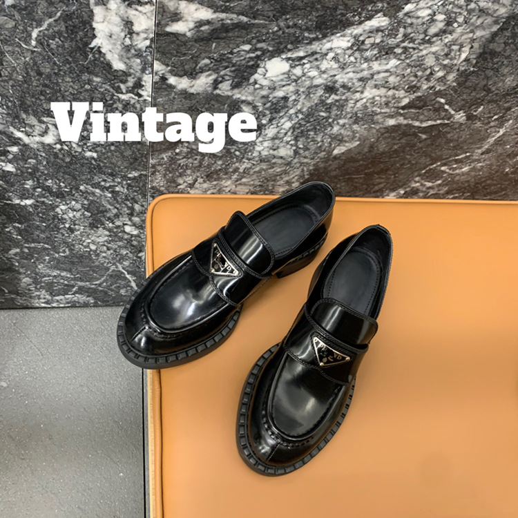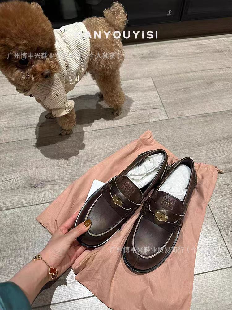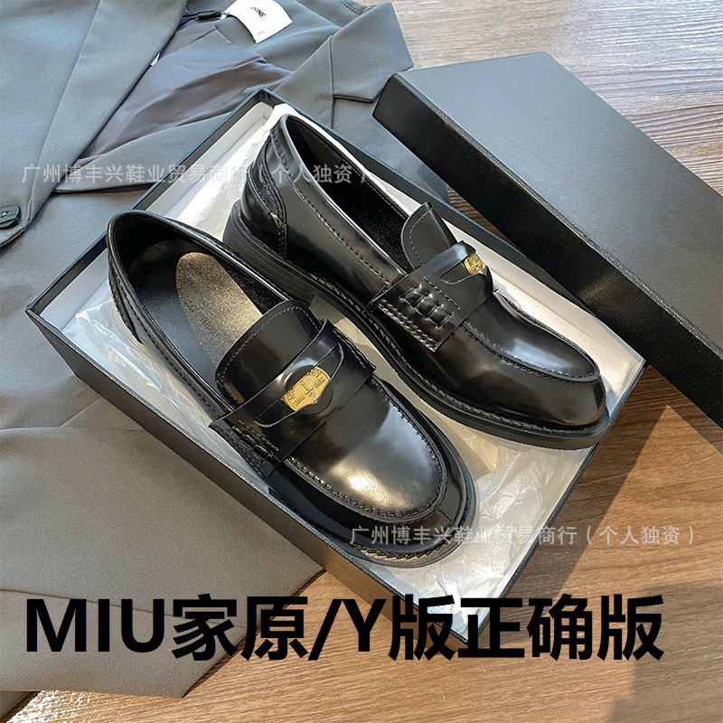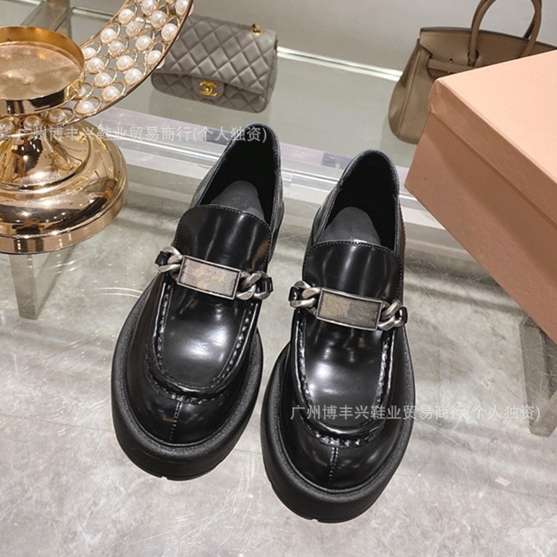 두꺼운 밑창의 진짜 가죽 영국 스타일 메리제인 MIU 금화 P 칼포슈 여성용 라운드 토 가죽 신발 여성용 단화스토어 가기