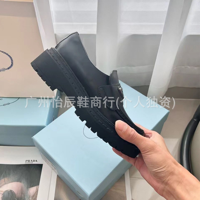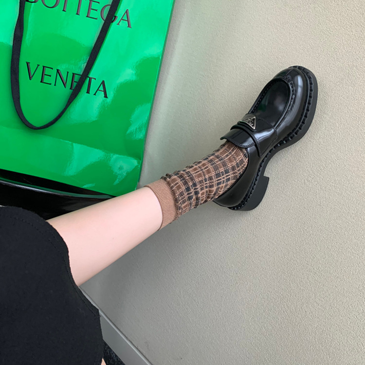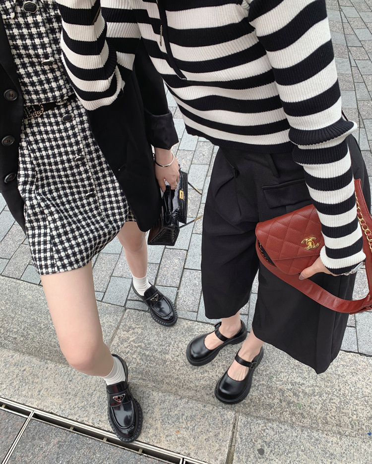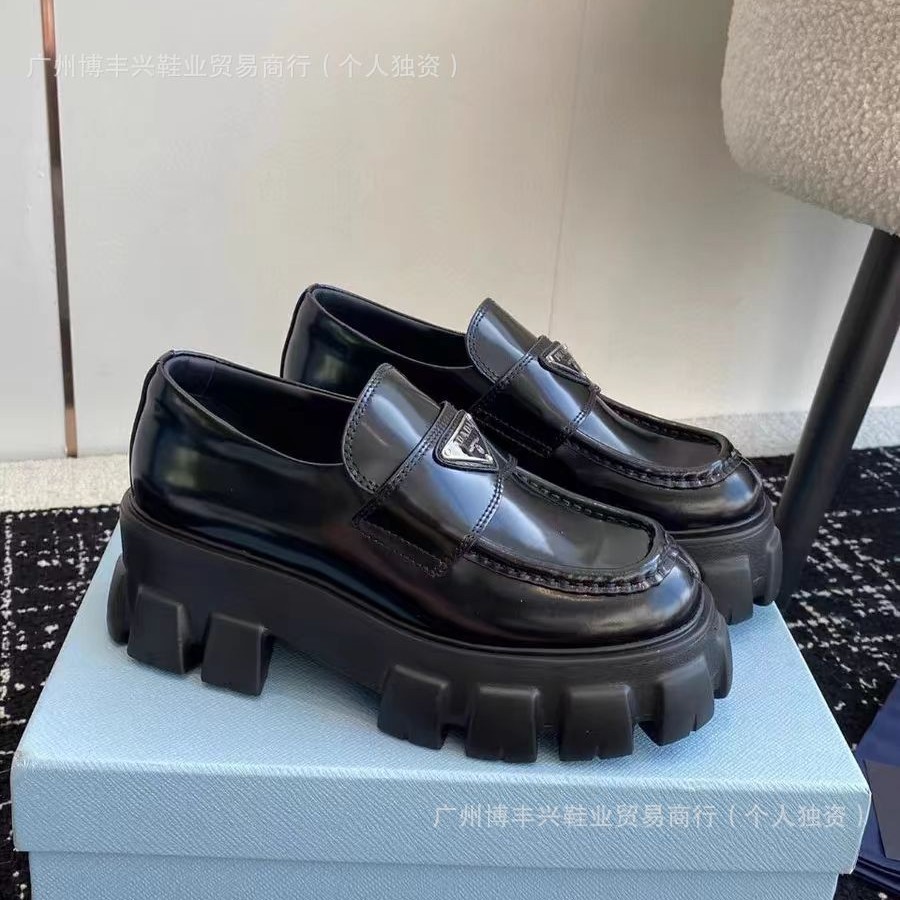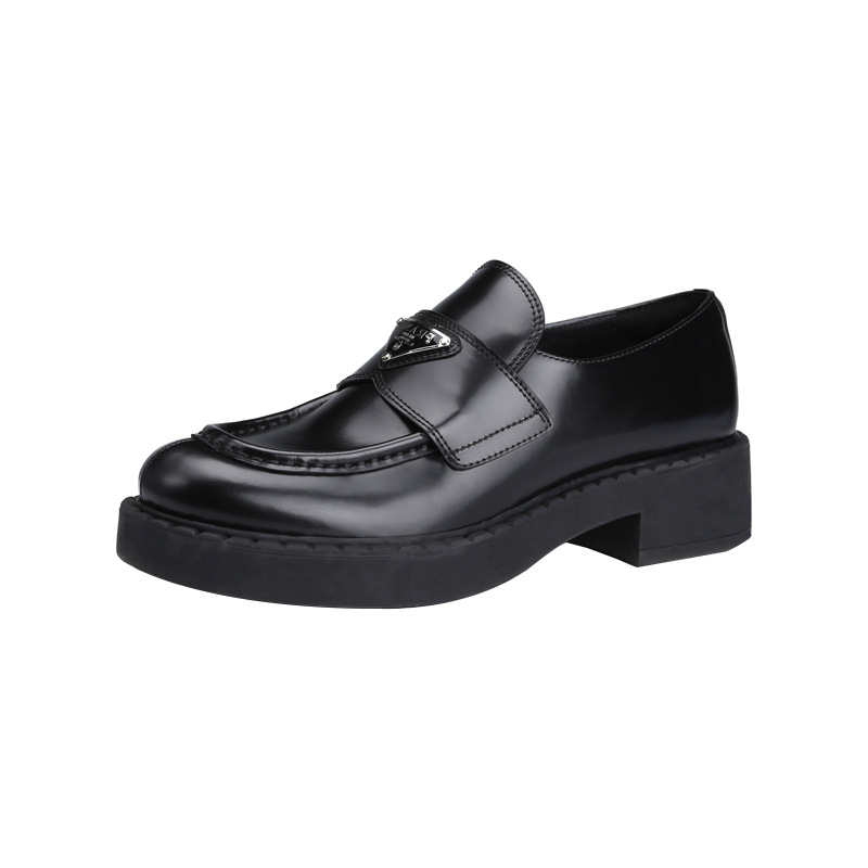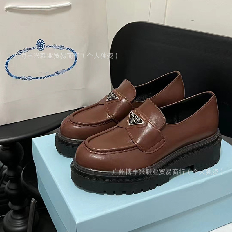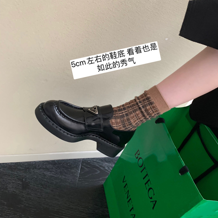 두꺼운 밑창의 진짜 가죽 영국 스타일 메리제인 MIU 금화 P 칼포슈 여성용 라운드 토 가죽 신발 여성용 단화스토어 가기