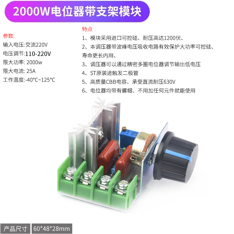 모터 모터 속도 조절기 모듈 2000/4000W SCR 고출력 220V AC 디밍 온도 조절