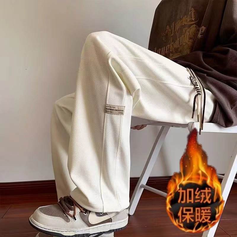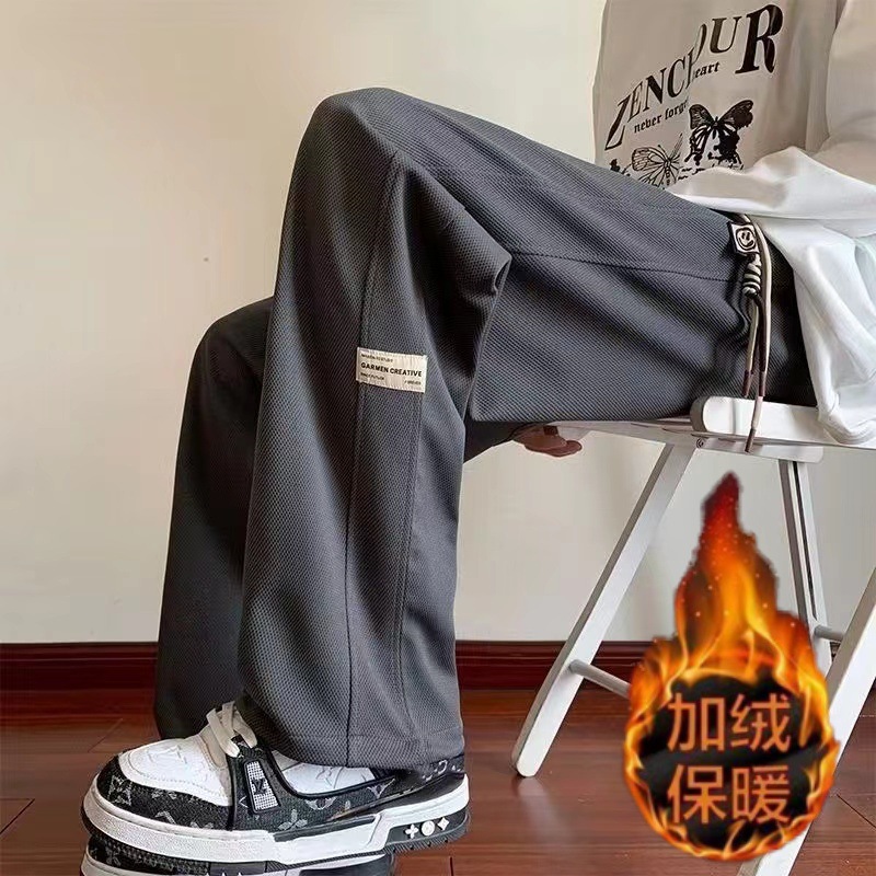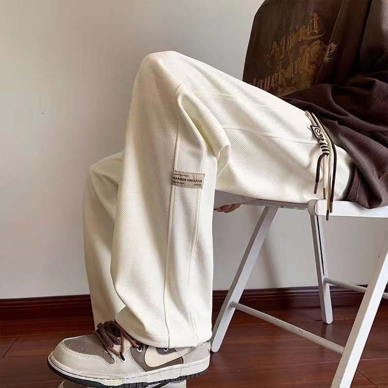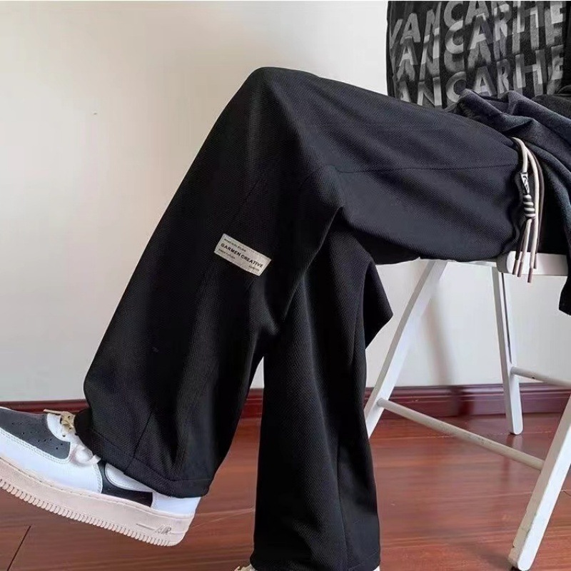 아메리칸 스타일 하이 스트리트 스티칭 바지 남성용 루즈 스트레이트 와이드 레그 스포츠 바지 봄과 여름 십대를위한 얇은 캐주얼 바지