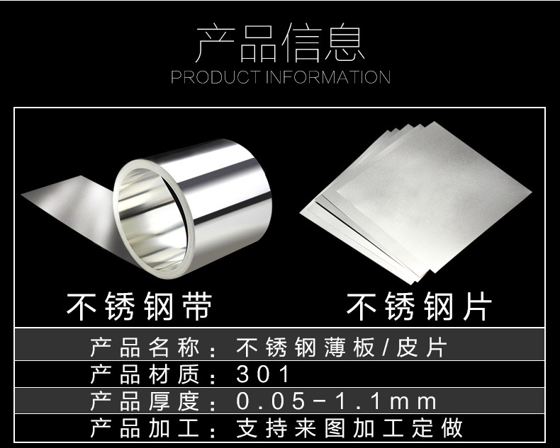 SUS301 스테인레스 스틸 플레이트 스테인레스 스틸 시트 스테인레스 스틸 플레이트 금속 절단 가공 0.01mm-1mm