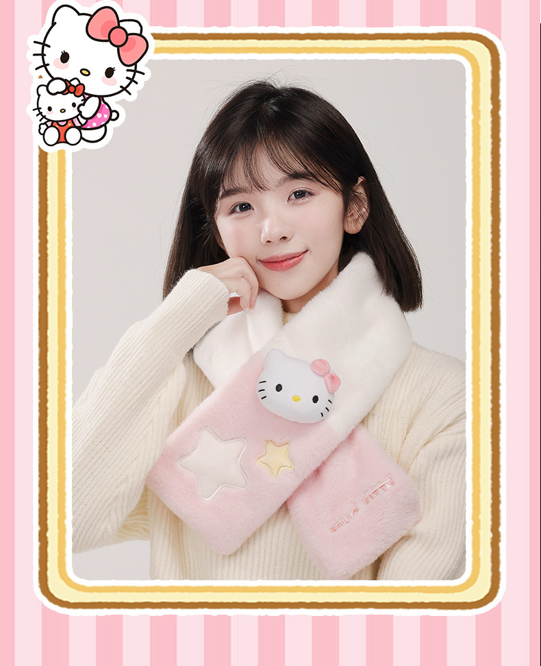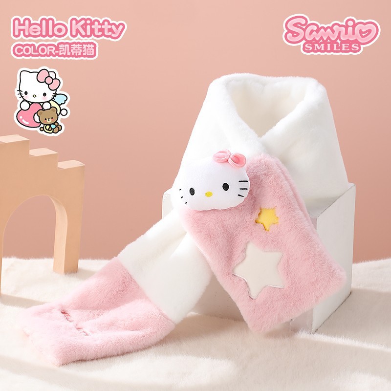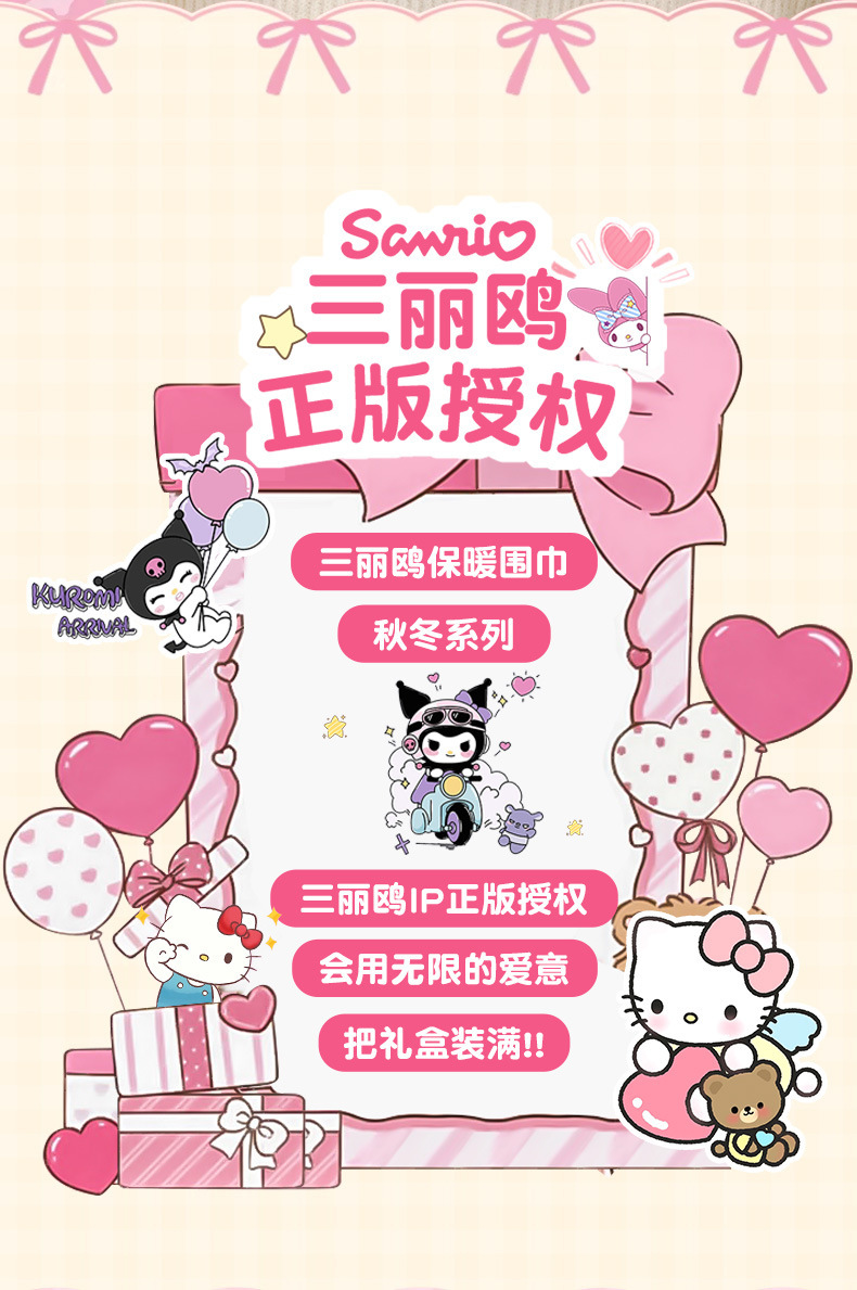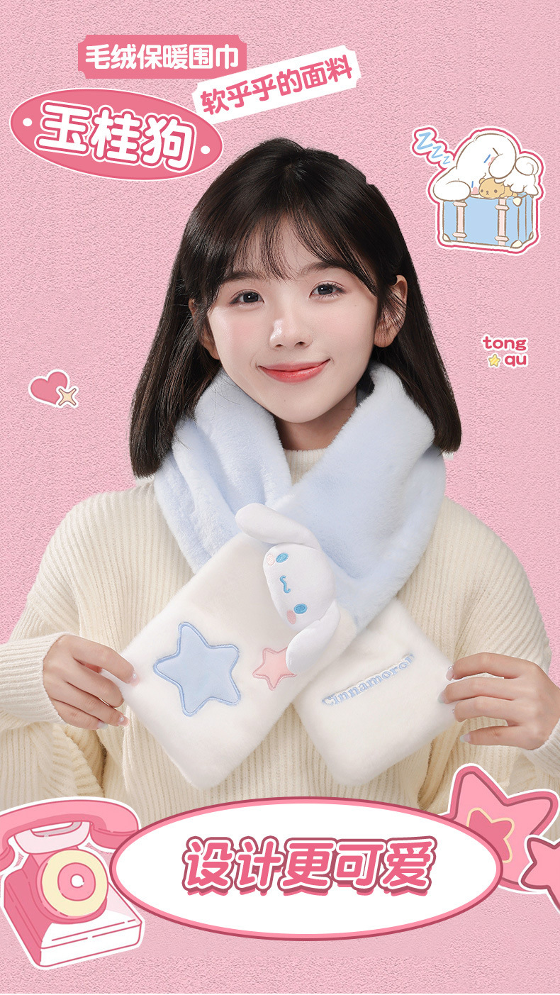 정품 공인 산리오 유 구이 개 봉제 스카프 귀여운 헬로 키티 가을과 겨울 소녀 따뜻한 두꺼운 스카프
