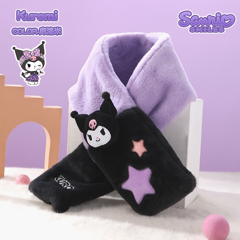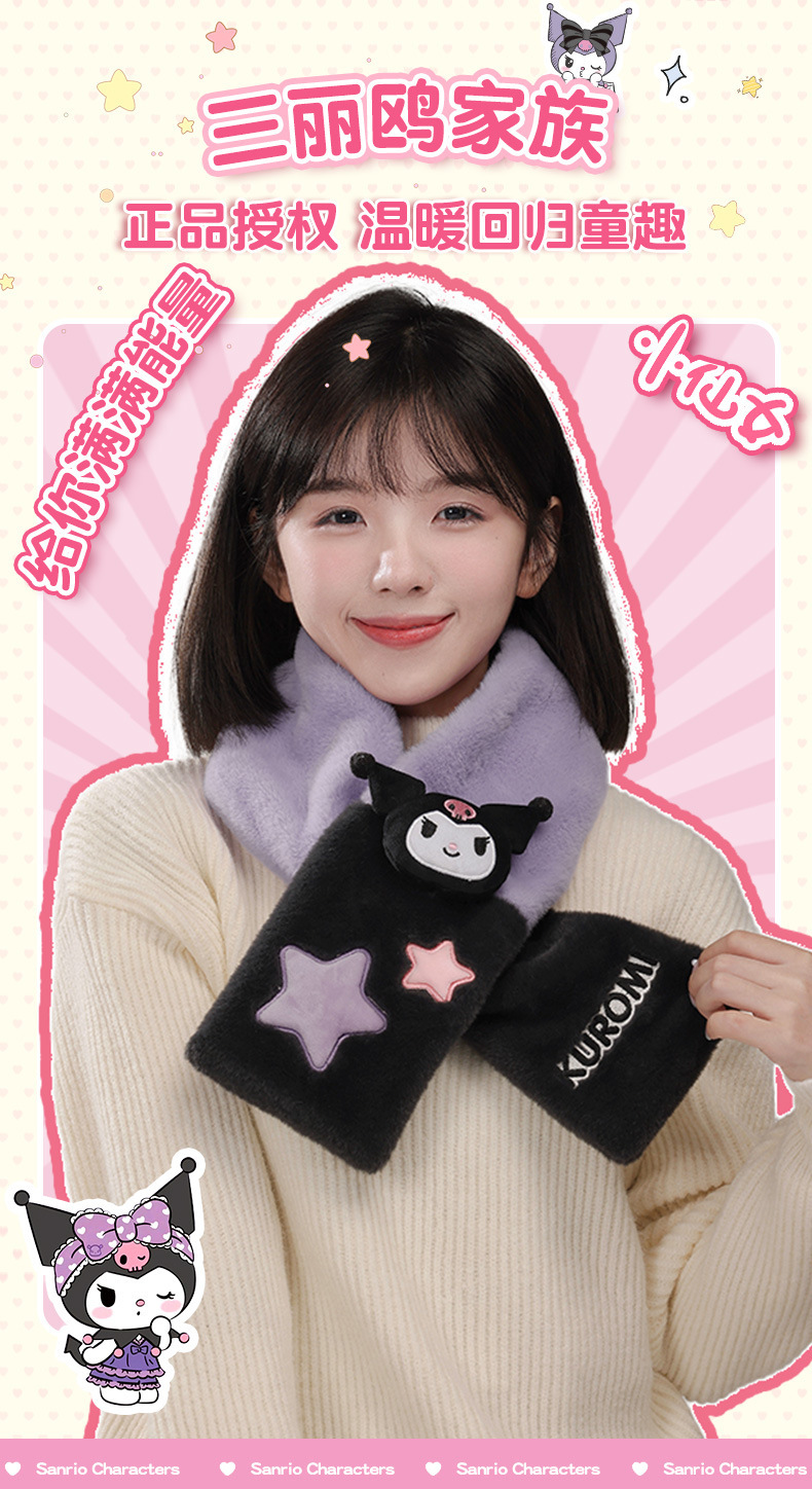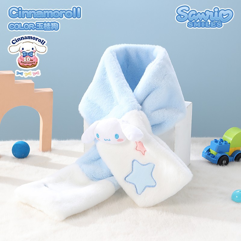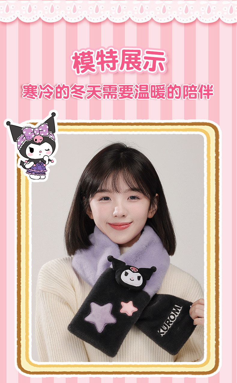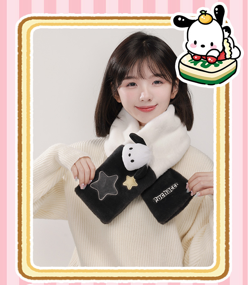 정품 공인 산리오 유 구이 개 봉제 스카프 귀여운 헬로 키티 가을과 겨울 소녀 따뜻한 두꺼운 스카프