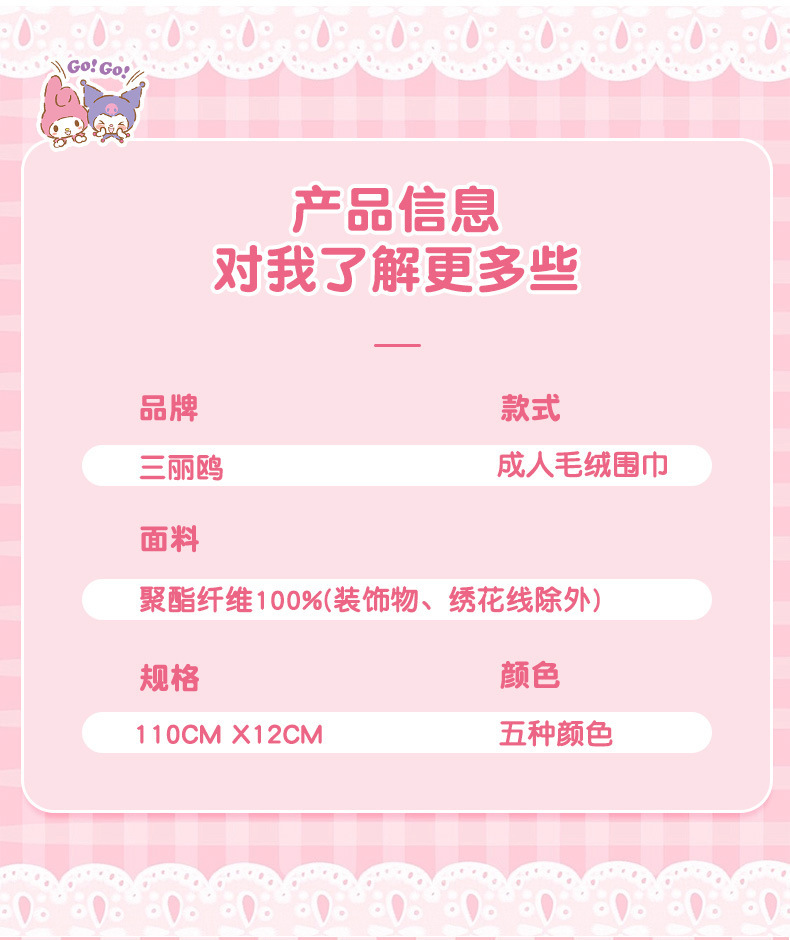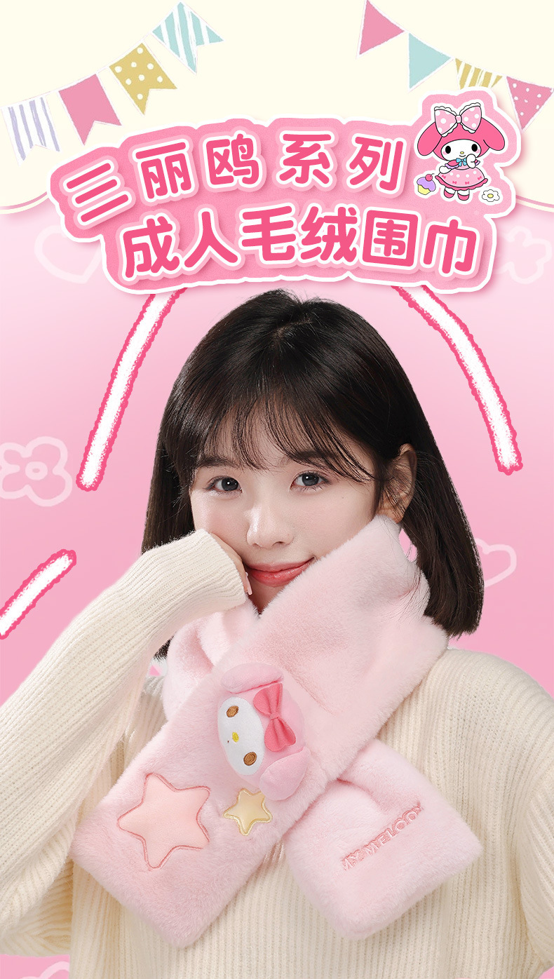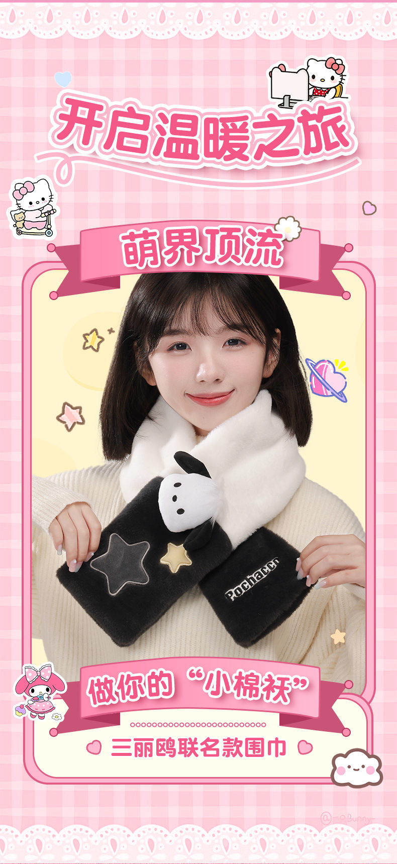 정품 공인 산리오 유 구이 개 봉제 스카프 귀여운 헬로 키티 가을과 겨울 소녀 따뜻한 두꺼운 스카프스토어 가기