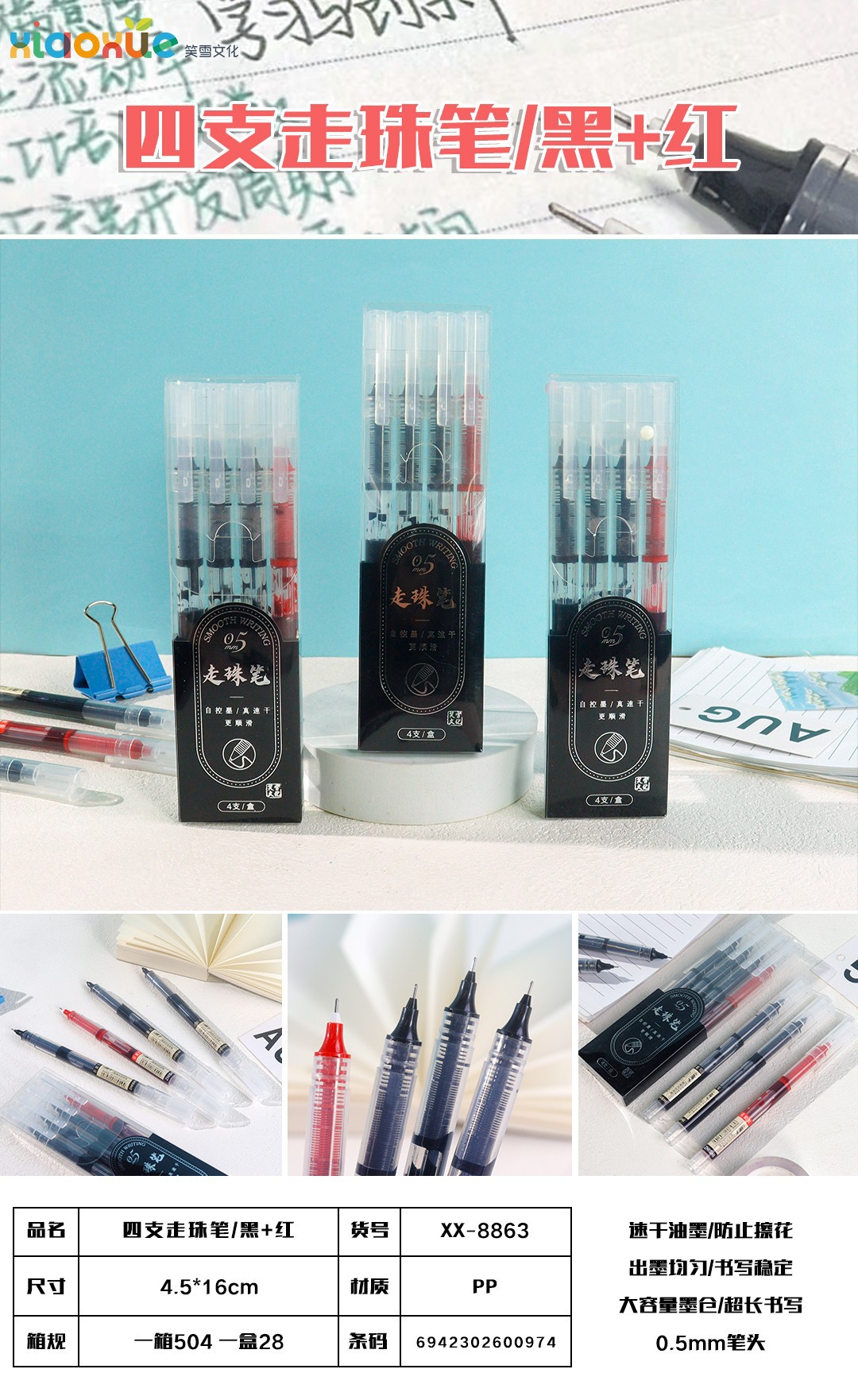 박스형 직선 액체 볼펜 검정색 빨간색 젤 펜 0.5mm 속건성 학생 2달러 매장 문구 상품 선물스토어 가기