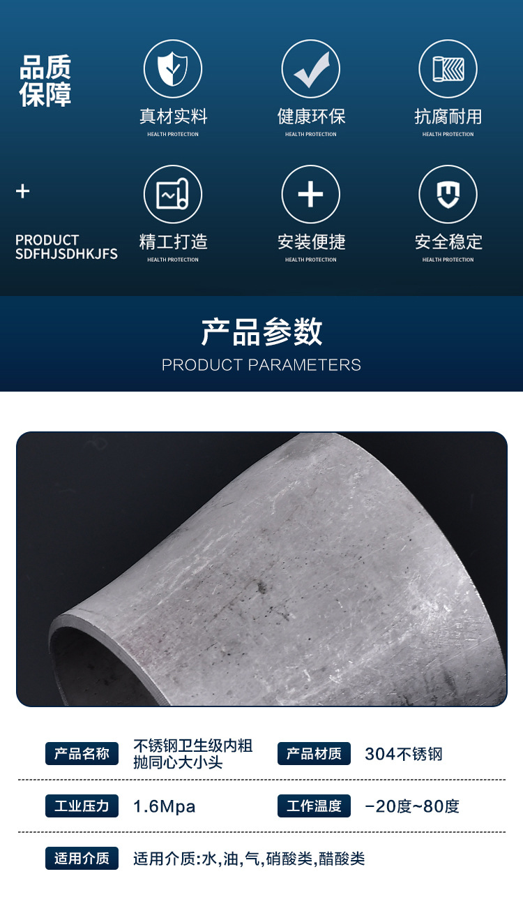 • 304 재질 Φ168*140*3 산업용 용접 크고 작은 헤드