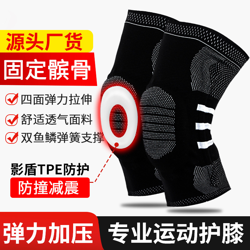 2022新款弹力加压运动护膝上新啦!!面料四面弹力拉伸  亲肤柔软  舒适透气 ,两侧的鱼鳞弹簧能很好的起到支撑减震作用,能在您运动时候减少损伤。髌骨处硅胶垫圈设计 防止髌骨磨损。有四个颜色选择  箱规100个一箱  尺码M L XL 欢迎广大新老客户前来选购!!产品支持印制logo需要印制logo的可以联系客服!