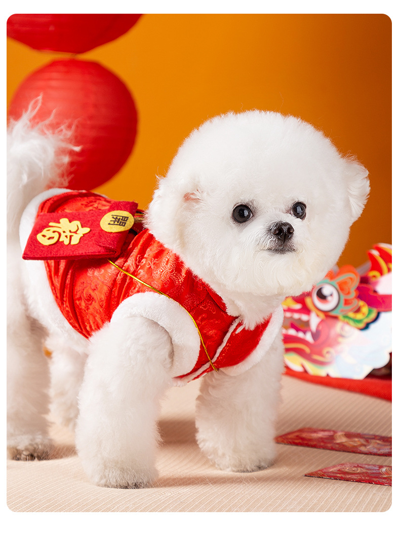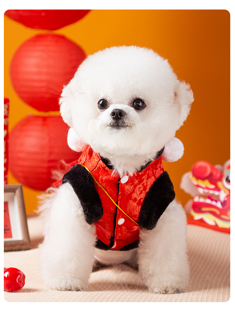 강아지를위한 새해 옷 가을과 겨울 따뜻한 테디 베어 중소 개 고양이 새해 애완 동물 새해 당나라 옷스토어 가기