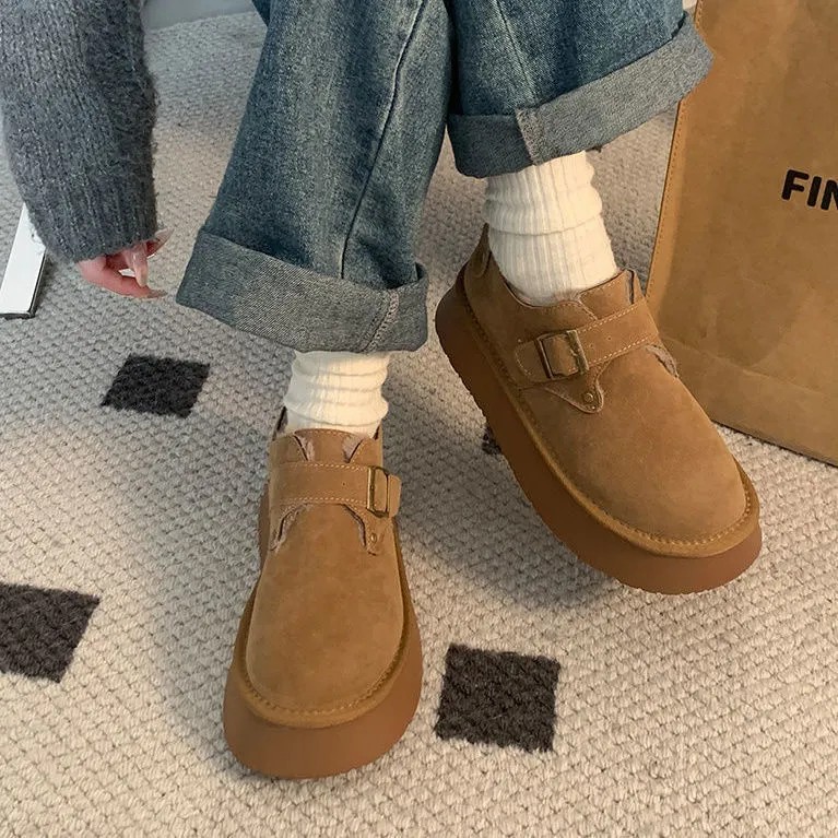 플랫폼 기모 버켄 니디 신발 따뜻한 스노우 부츠 여성 부츠 2024 겨울 새 패션 코튼 신발 한국식 올 매치 쇼트 부츠스토어 가기