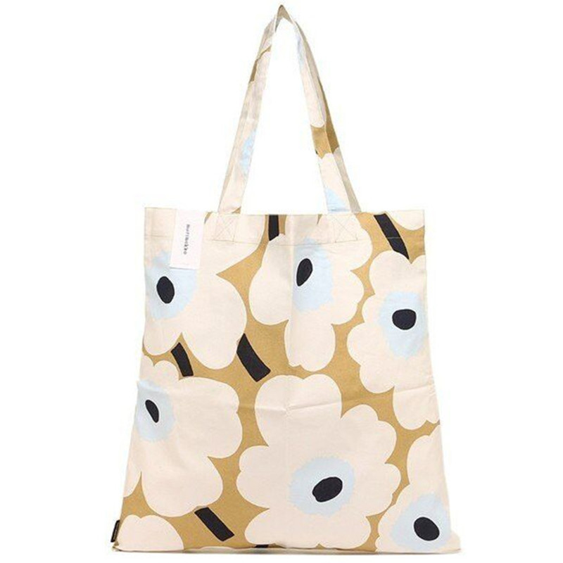 재고 핀란드 새로운 꽃 Marimekko 여성용 캔버스 어깨 가방 대용량 친환경 휴대용 쇼핑백스토어 가기