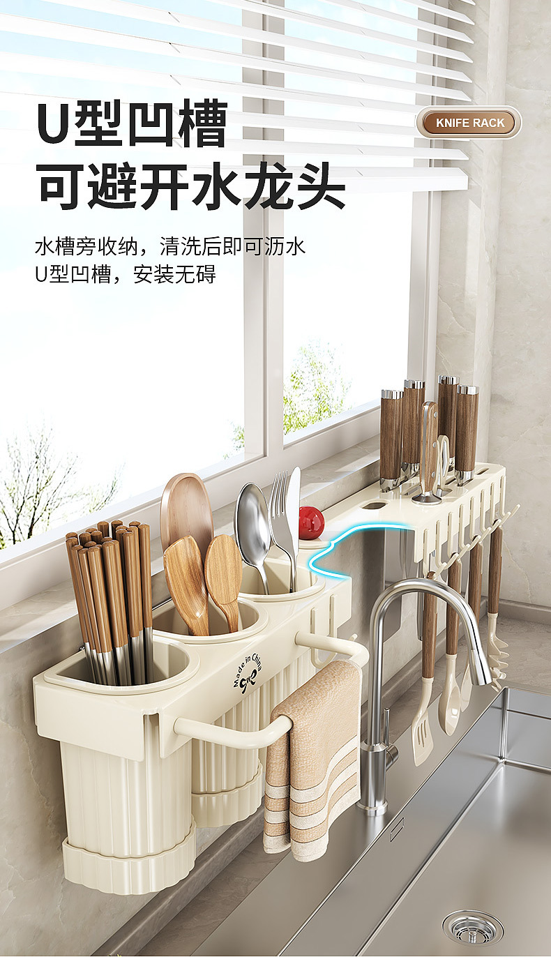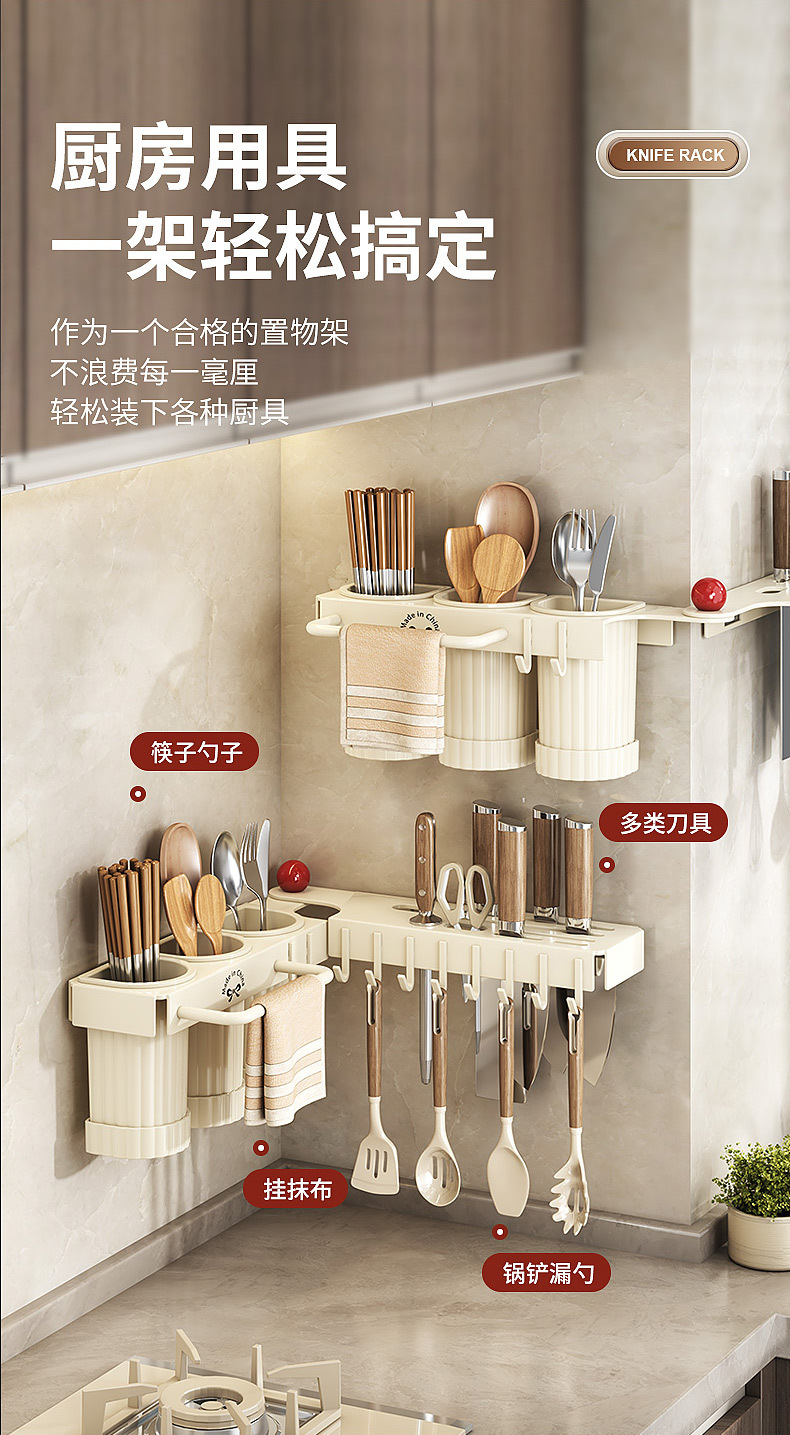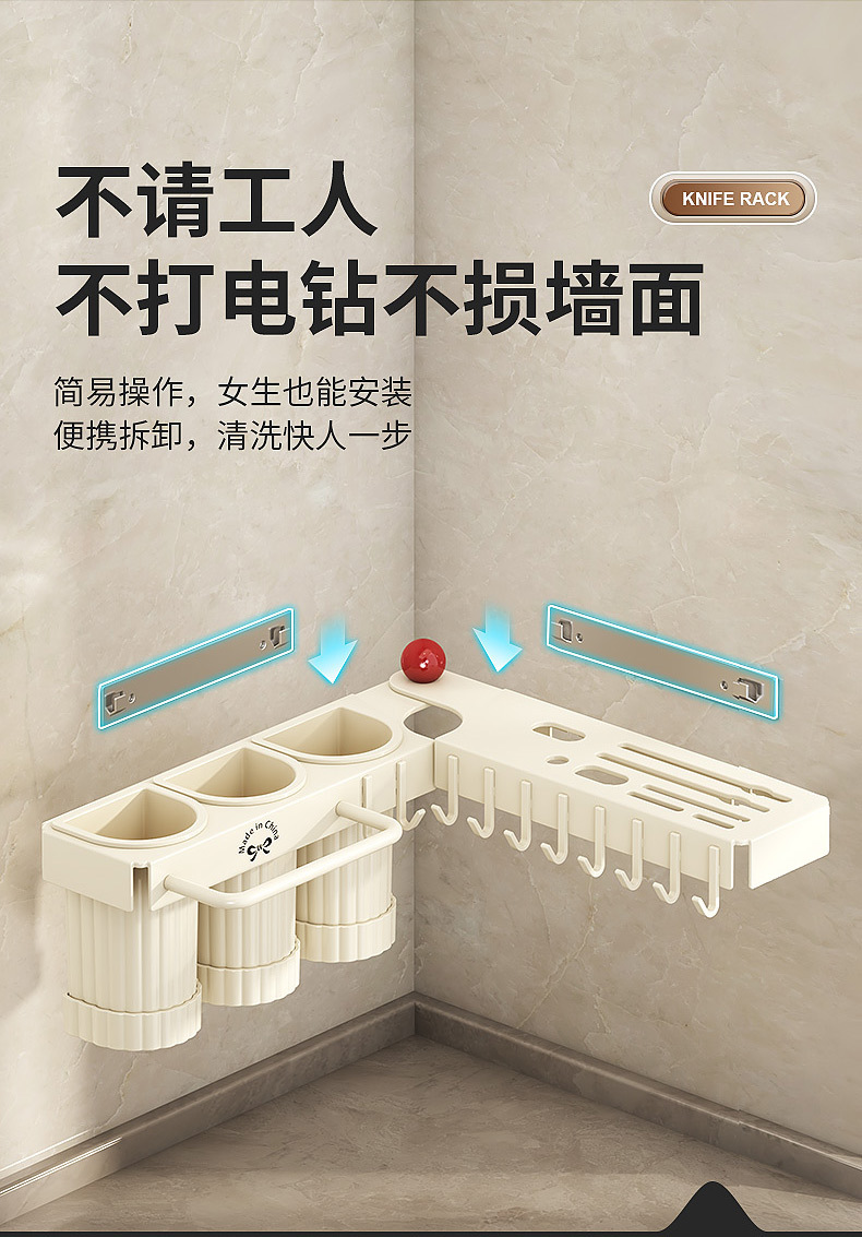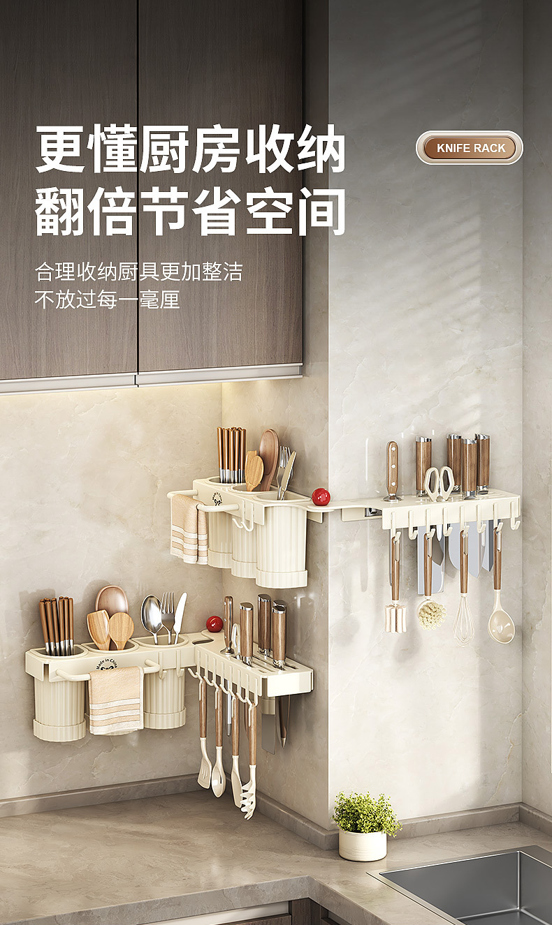 펀치가없는 다기능 강력한 하중 주방 칼 랙 스토리지 랙 삽 스푼 나이프 젓가락 스토리지 랙