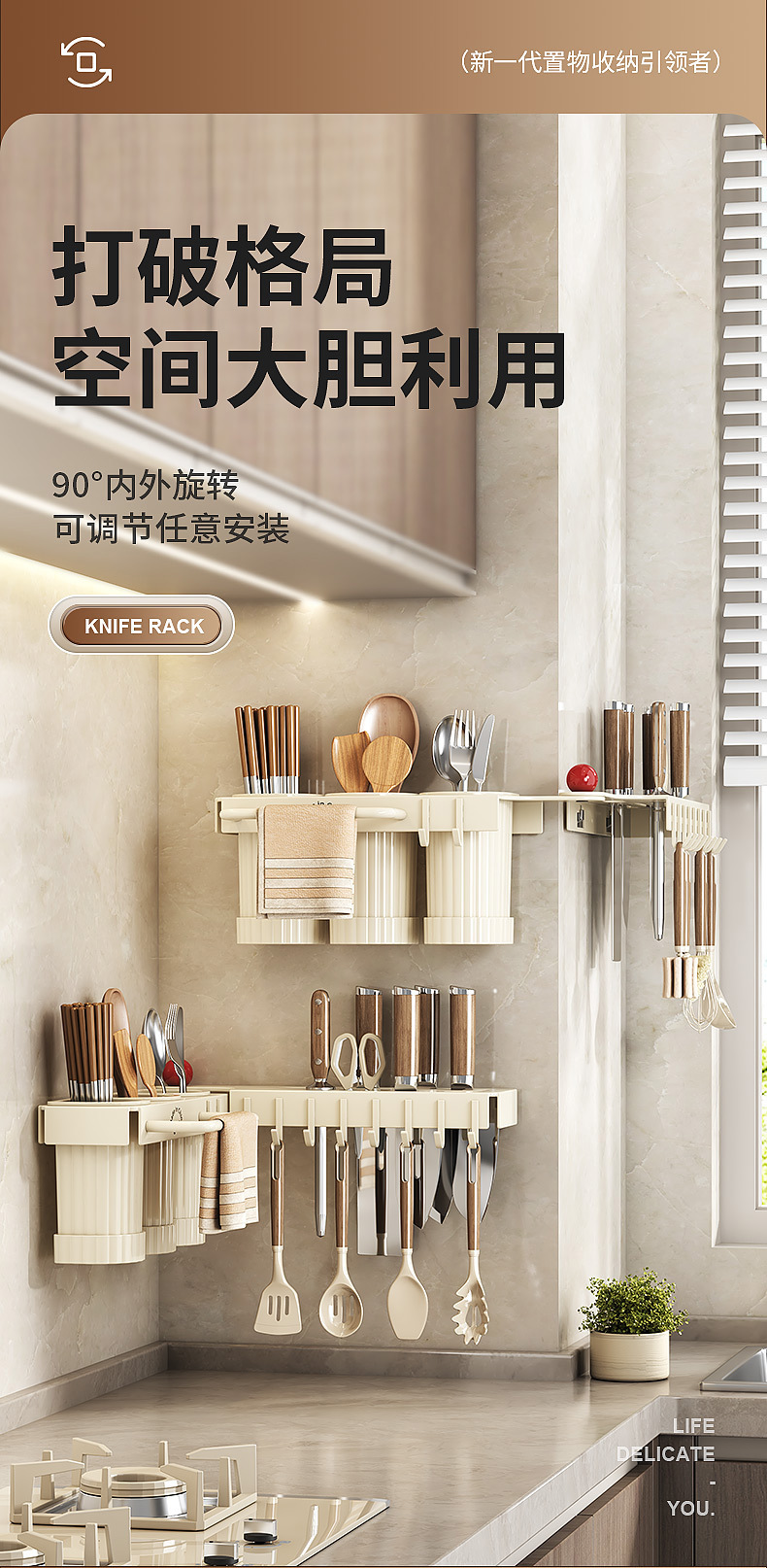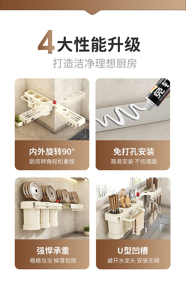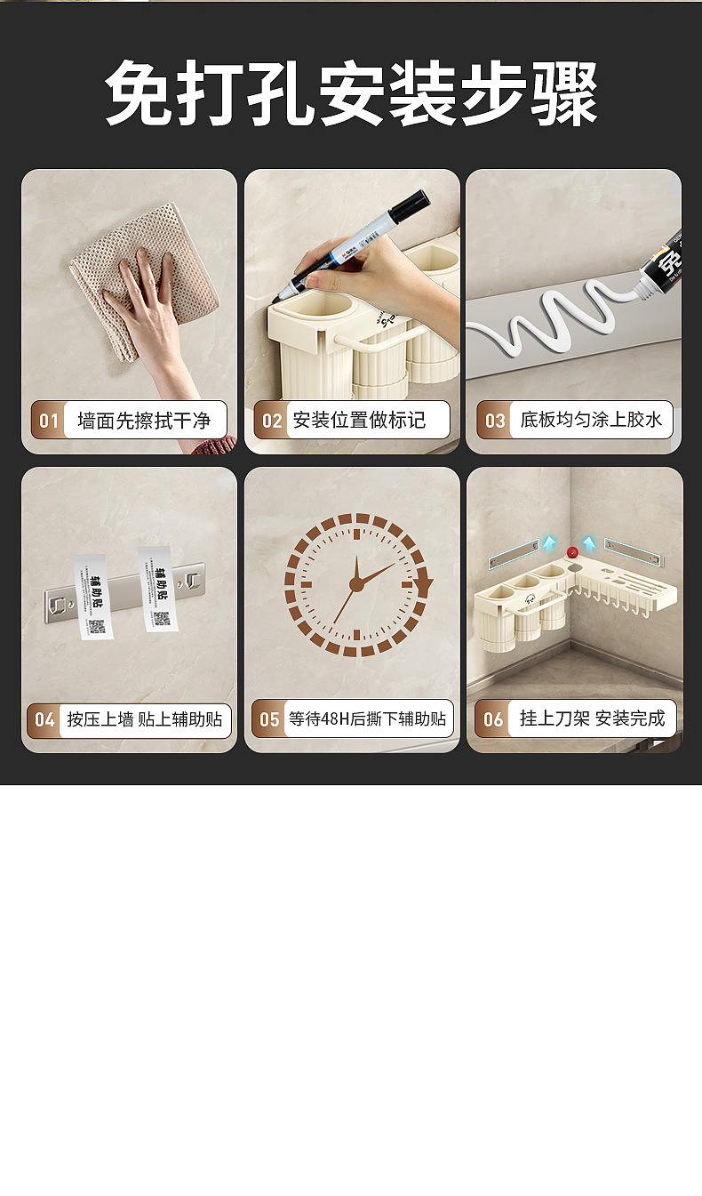 펀치가없는 다기능 강력한 하중 주방 칼 랙 스토리지 랙 삽 스푼 나이프 젓가락 스토리지 랙