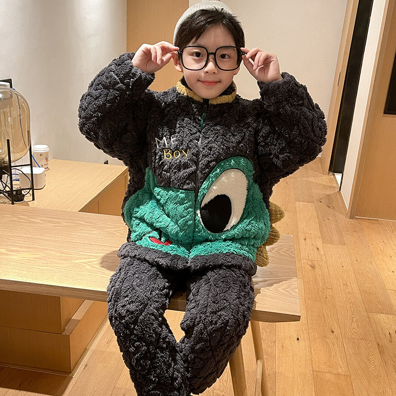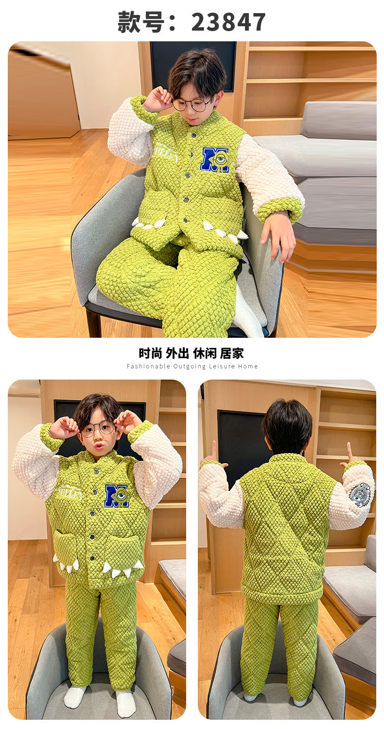 겨울 플란넬 퀼트 파자마 소년 따뜻한 세트 산호 양털 큰 아이들을 기모 3 층 두꺼운 홈 옷스토어 가기