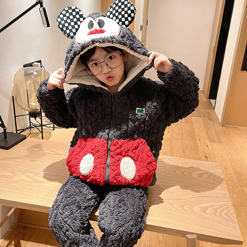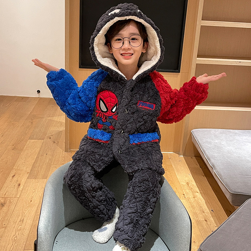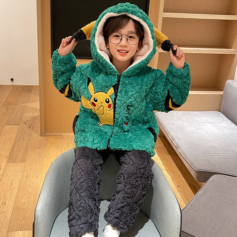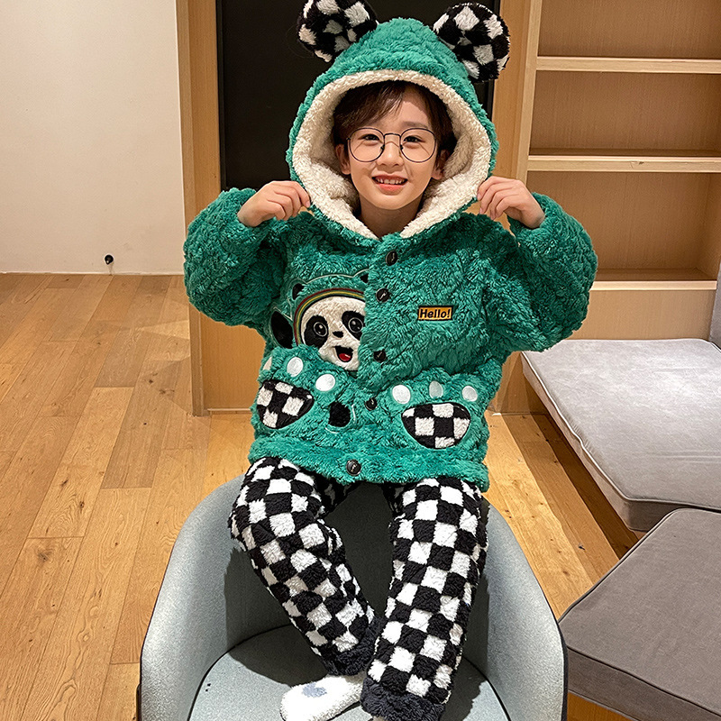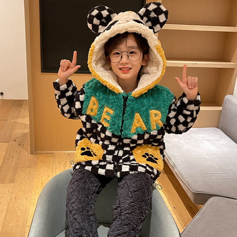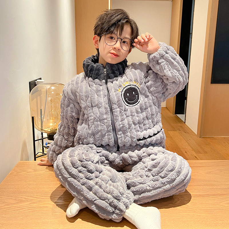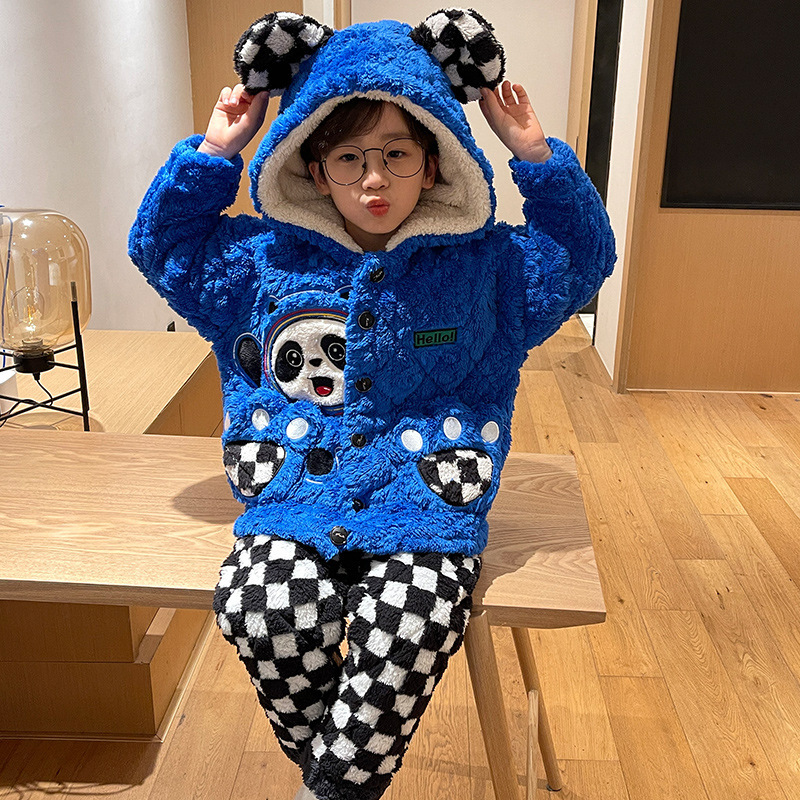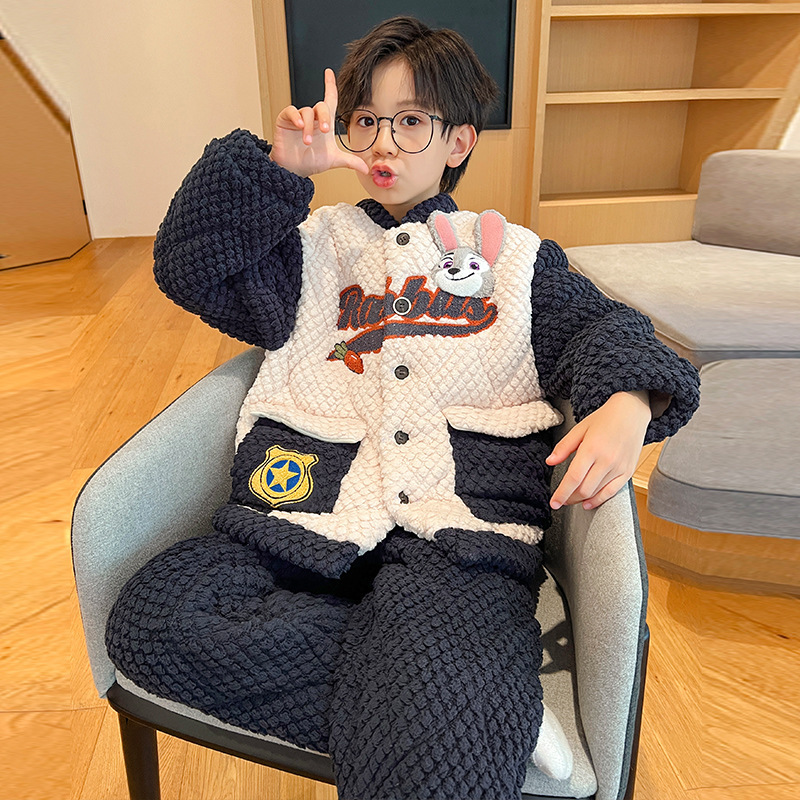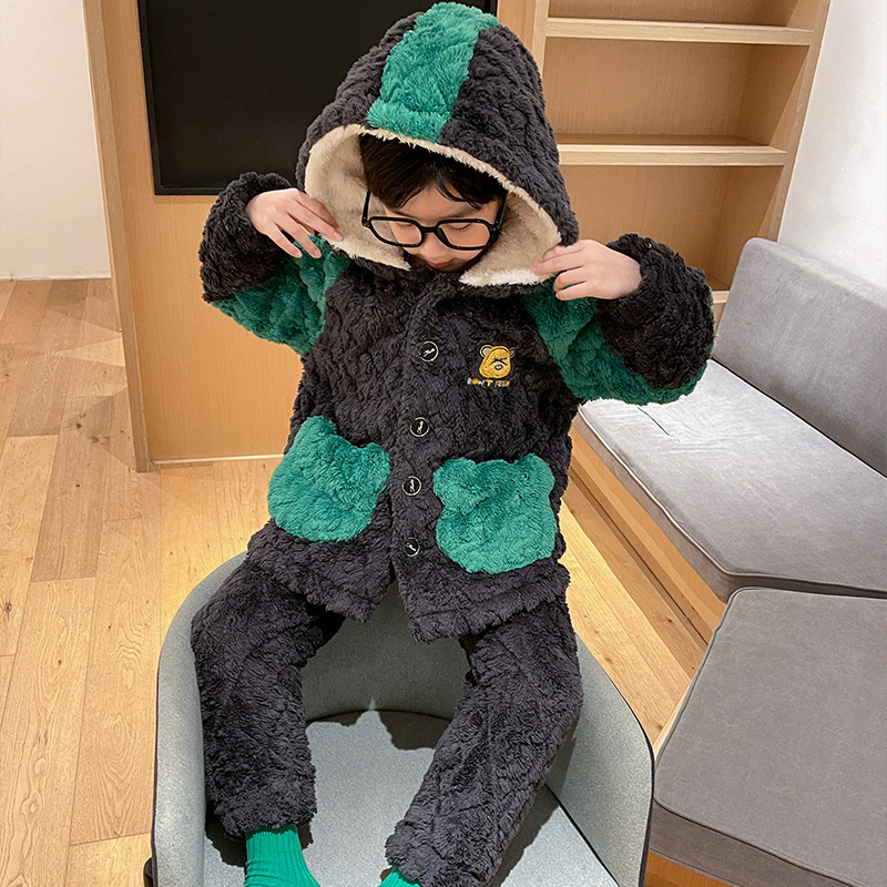 겨울 플란넬 퀼트 파자마 소년 따뜻한 세트 산호 양털 큰 아이들을 기모 3 층 두꺼운 홈 옷