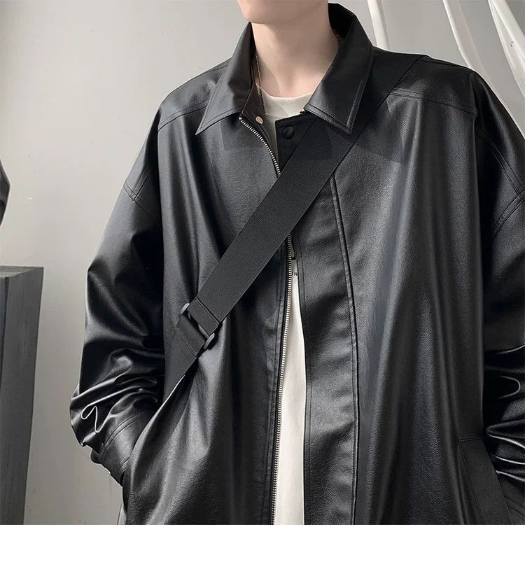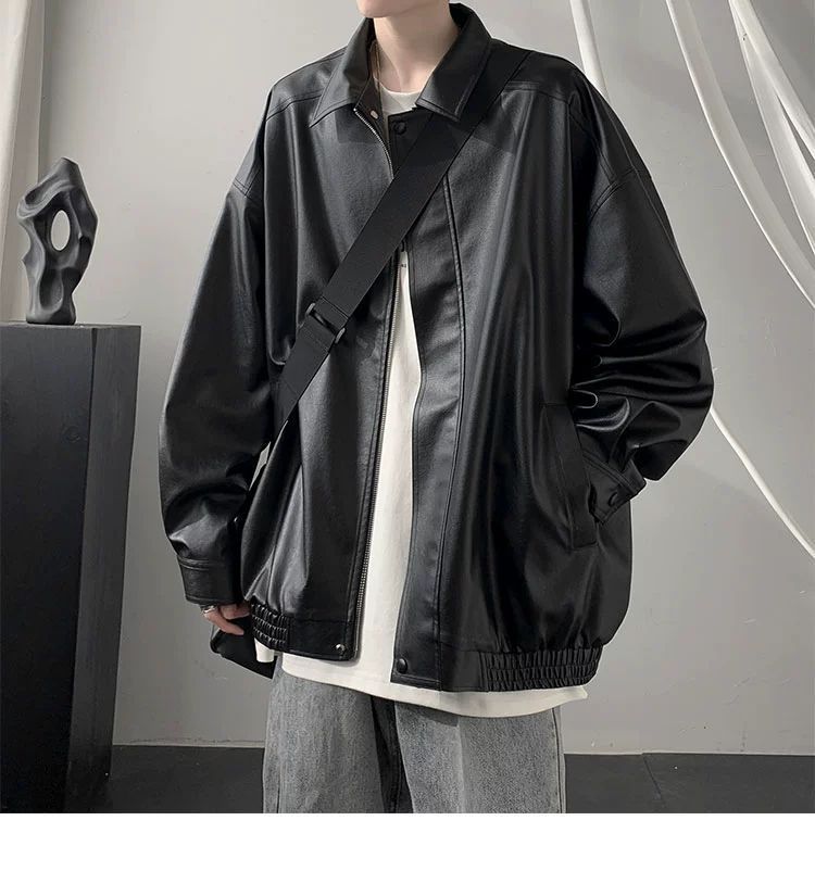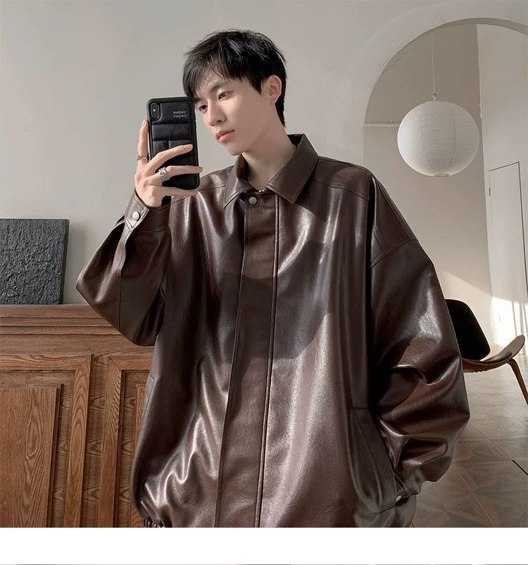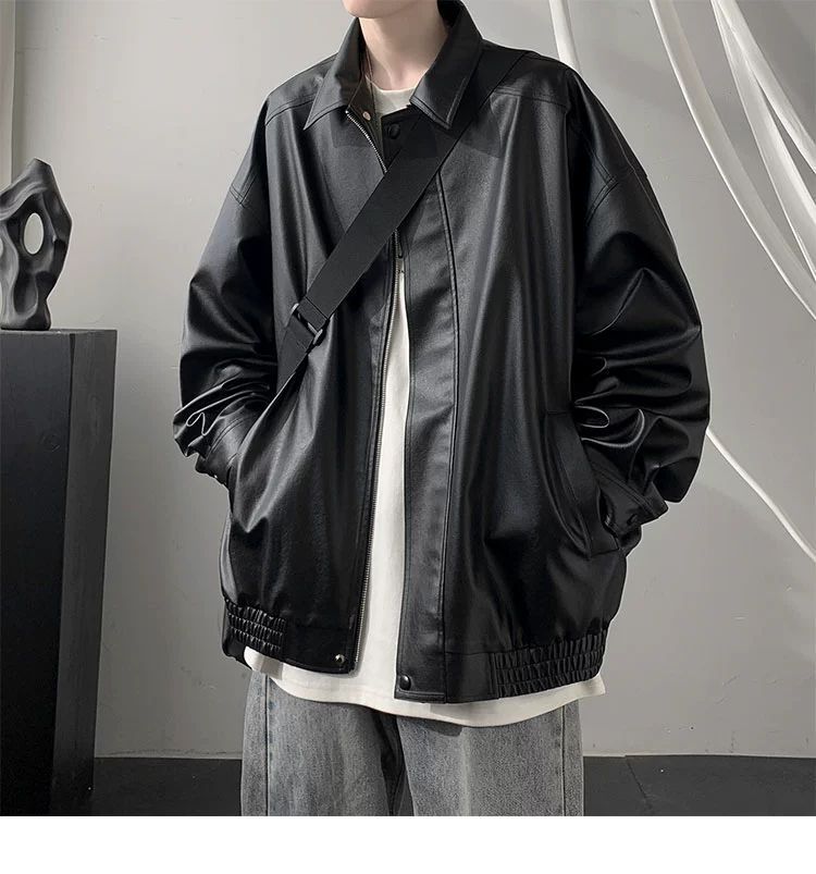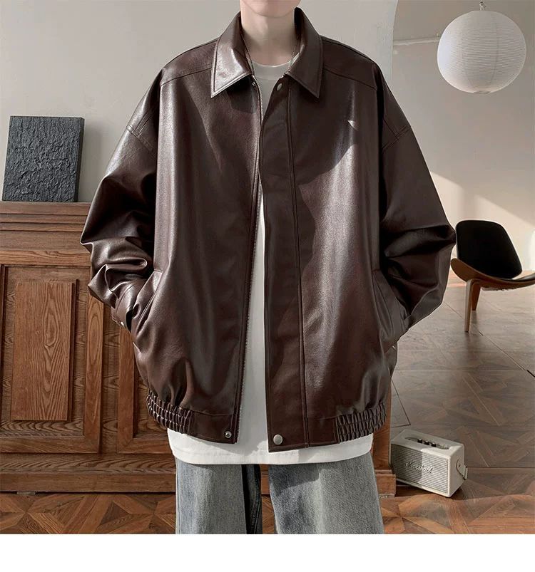 아메리칸 스타일 레트로 가죽 자켓 남성 봄과 가을 하이 엔드 느낌 더피 핸섬 트렌디 브랜드 캐주얼 루즈 가죽 옷깃 재킷