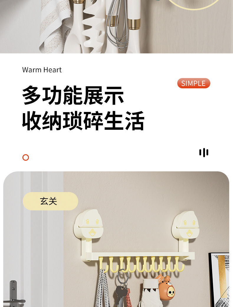 도파민 빨판 주방 후크 랙 홀프리 스푼 슬리퍼 저장 랙 다기능 후크 보관스토어 가기
