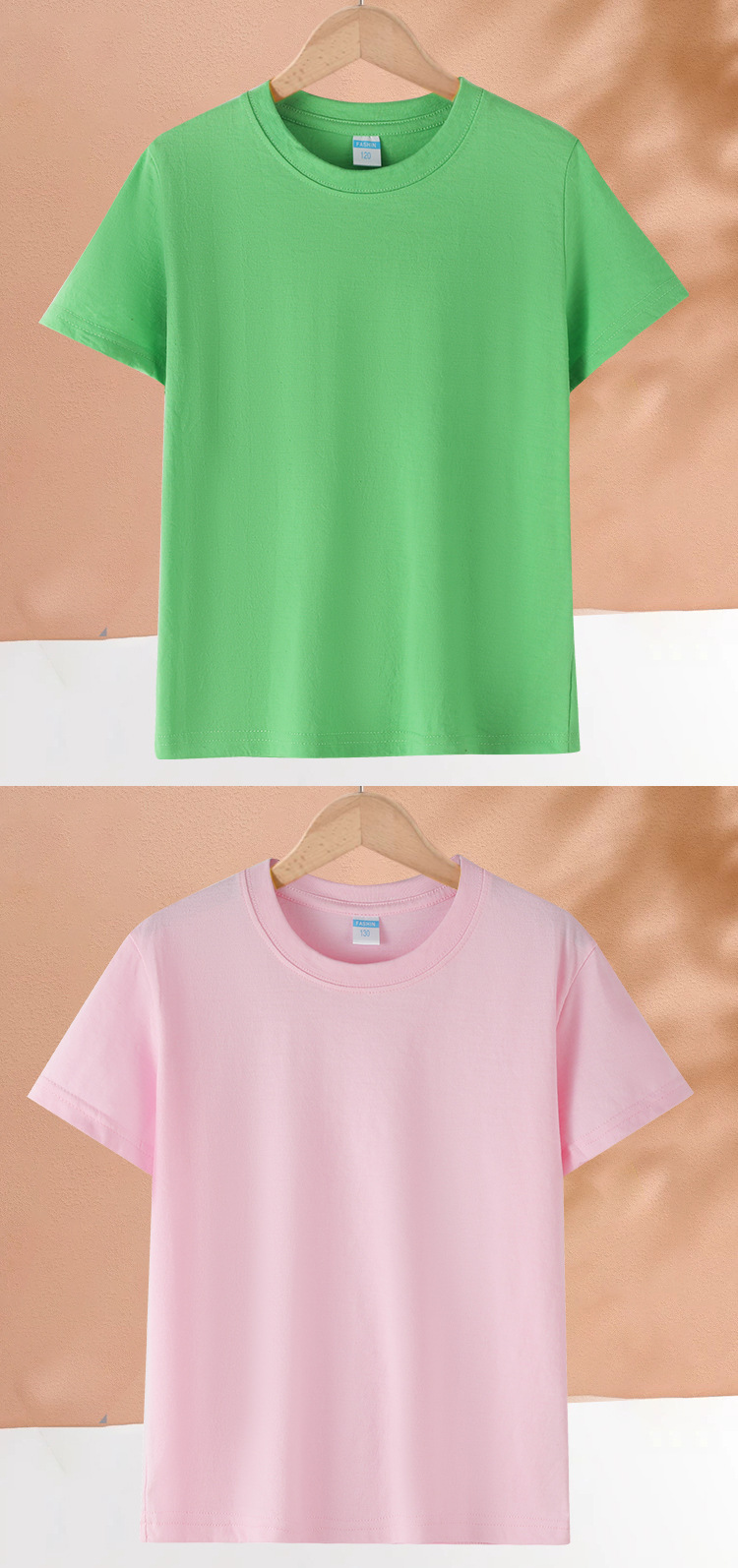 연꽃 뿌리 전분 어린이 티셔츠 느슨한 캐주얼 신장 코튼 소년과 소녀 라운드 넥 짧은 소매 티셔츠 그룹 클래스 의류 인쇄 로고