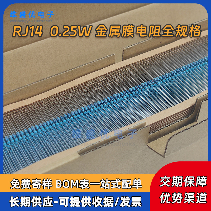 공장 직접 RJ14 0.25W 1/4W MF 금속 필름 저항 전체 그룹 값 공급 플러그인 저항 전체 상자스토어 가기