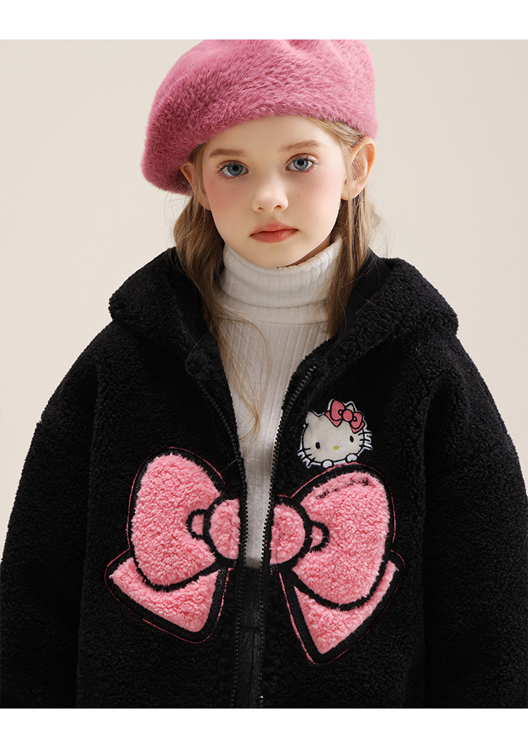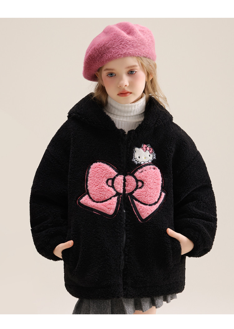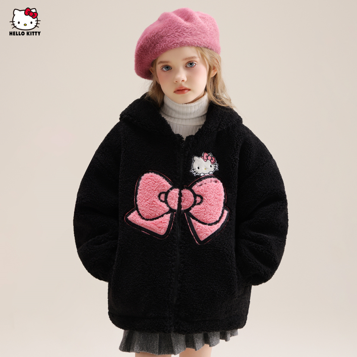 헬로 키티 헬로 키티 어린이 및 소녀 두꺼운 양털 여성의 아기 가을과 겨울 2024 면 패딩 코트
