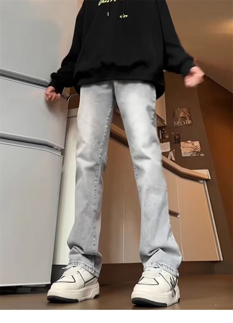 남성용 슬림 슬림 바지 겨울 아메리칸 스타일 바이브 스타일 팬츠, 하이 스트리트 패셔너블하고 잘 생긴 블랙 스트레이트 레그 청바지스토어 가기