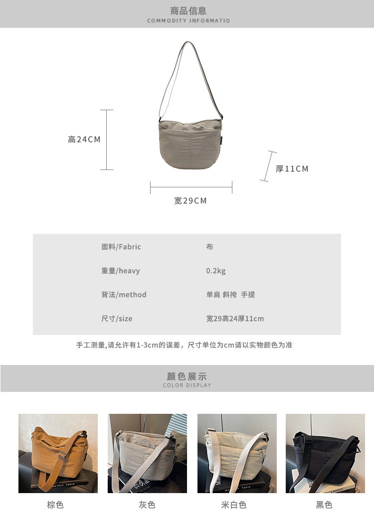 한국 스타일 경량 대용량 가방 캐주얼 올 매치 어깨 헝겊 가방 유니섹스 심플 클래스 통근 크로스 바디 백