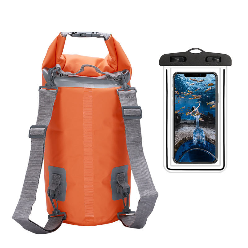 • 휴대용 방수 버킷 + 이중 후크 단색 PVC 휴대폰 가방 = 주황색 + 주황색
