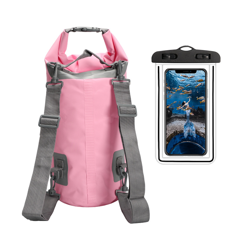 • 휴대용 방수 물통 + 이중 후크 단색 PVC 휴대폰 가방 = 라이트 핑크 + 핑크