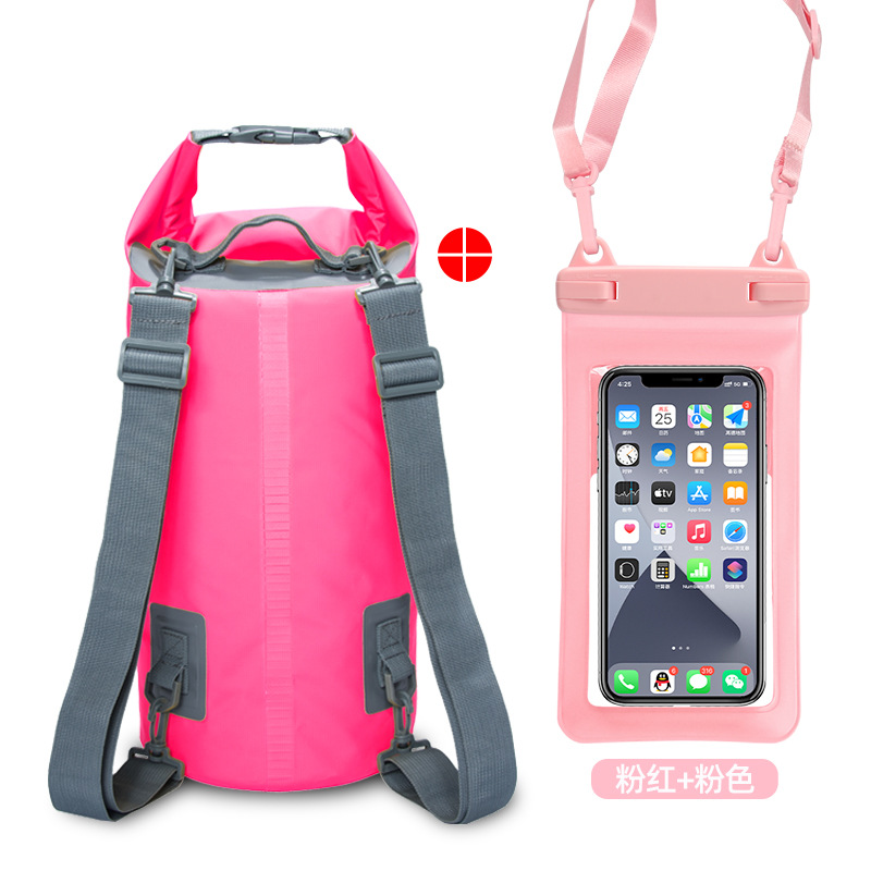 • 휴대용 방수통 + 이중 후크 단색 PVC 휴대폰 가방 = 핑크 + 핑크