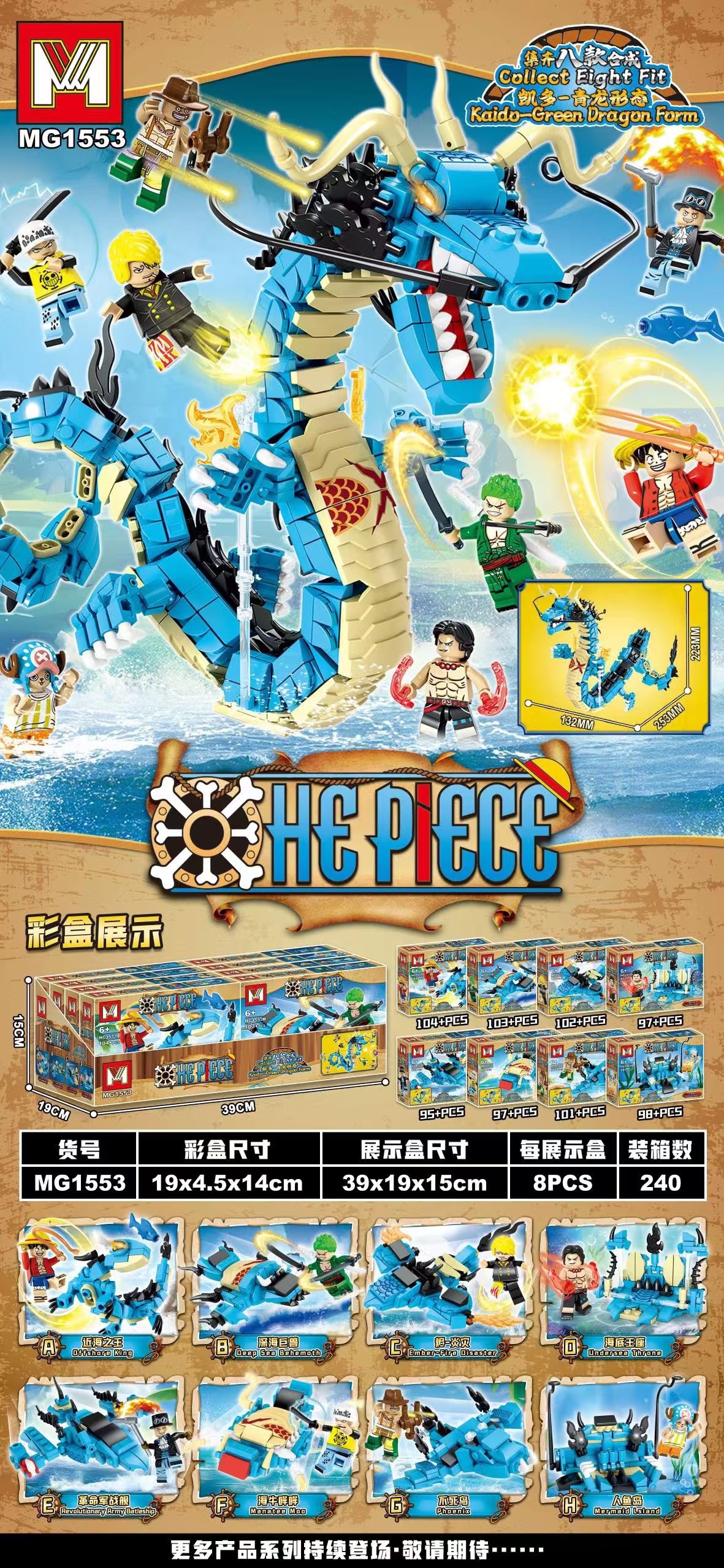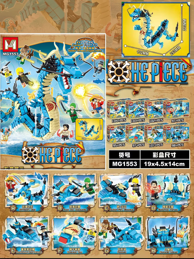 국경을 넘는 해적 카이도 청룡왕 블록 조립 장난감 신룡 모델 장식품 대외 무역 도매 1553