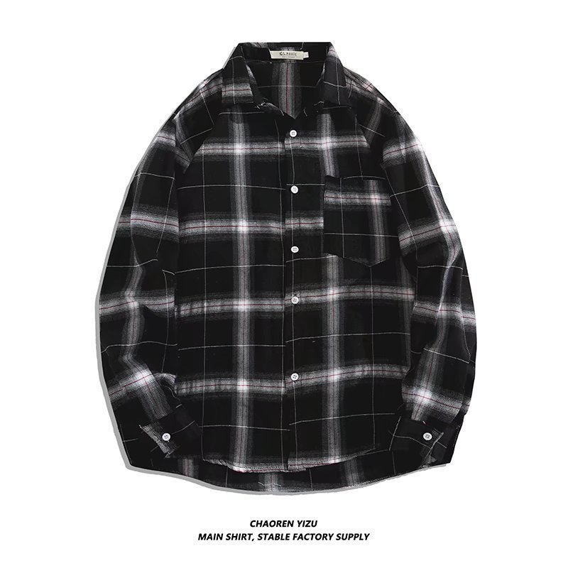 체크 무늬 긴팔 셔츠 남자의 봄과 가을 2022 트렌디 인 캐주얼 여름 얇은 코트 홍콩 스타일 루즈 셔츠스토어 가기