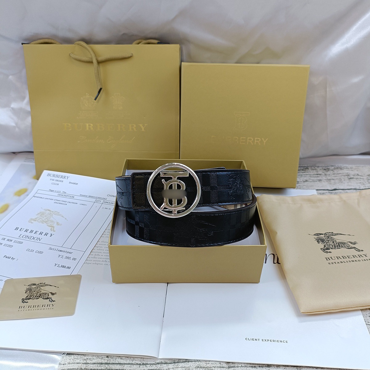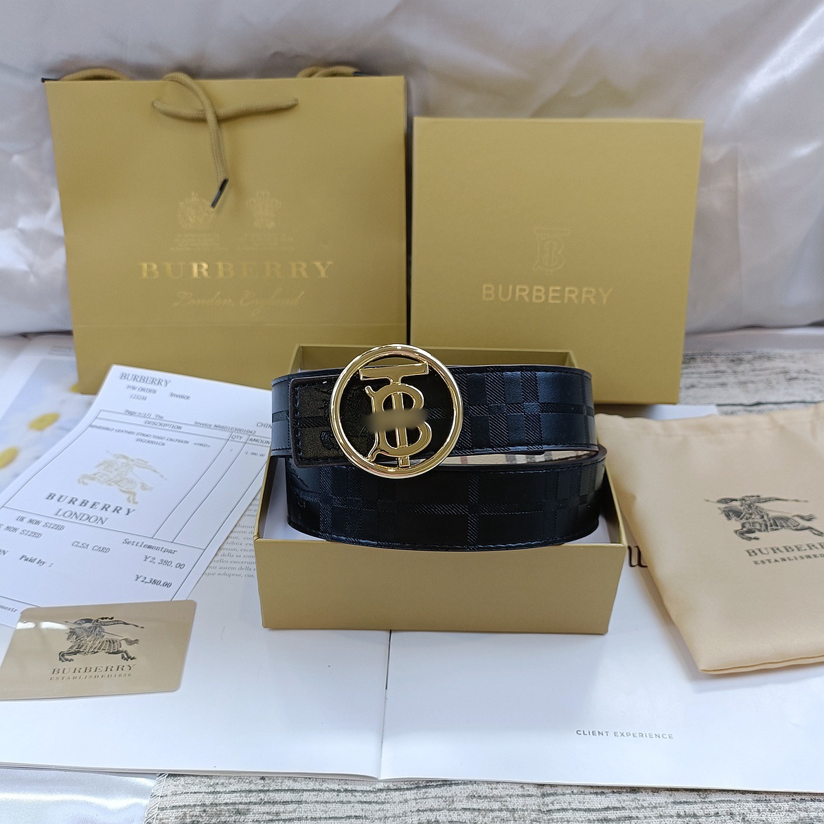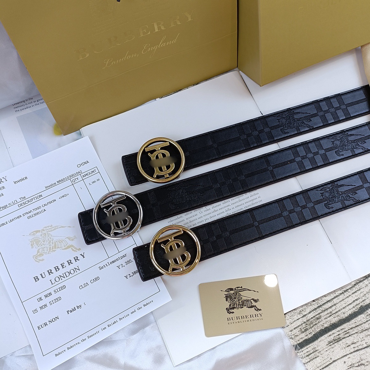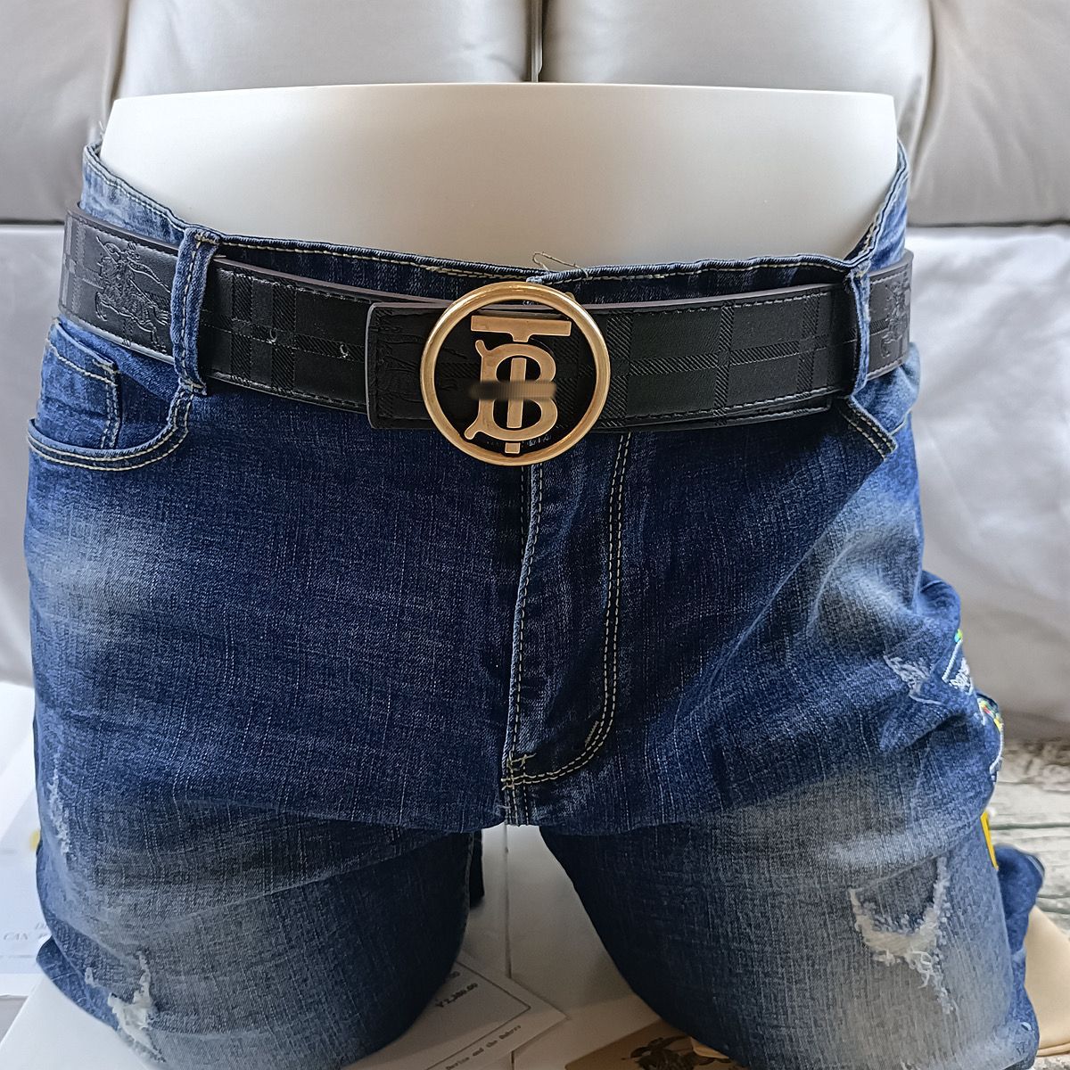 • 엠보싱 처리된 블랙 B 골드 버클